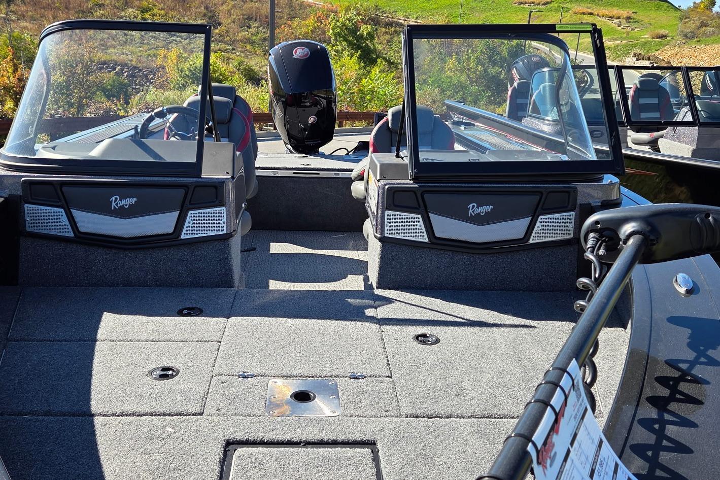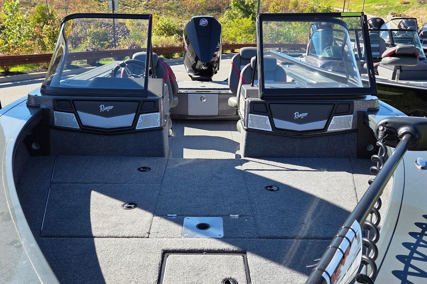 The new VX1988WT is a full featured, performance built boat, with unmatched quality to take you on the biggest and roughest waters. The VX series borrows design cues from Ranger’s fiberglass Reata® fish-n-play series of proven winners with families and tournament-savvy anglers alike. Huge electronics, clever storages and a wealth of premium seating deliver comfort and class for any activity. Buoyed by Ranger’s all-welded, foam-filled and wood-free construction with .125” aluminum, the VX1988WT is a solid platform for whatever the day holds. Non-skid cockpit flooring, a Bluetooth stereo, with USB and 12V outlets highlight the interior while a 7’6” center rod locker, standard Minn Kota® trolling motor and Lowrance® electronics get you on the fish in a hurry. Whether it’s a day out with your family or fishing the tournament circuit this boat can handle it all.