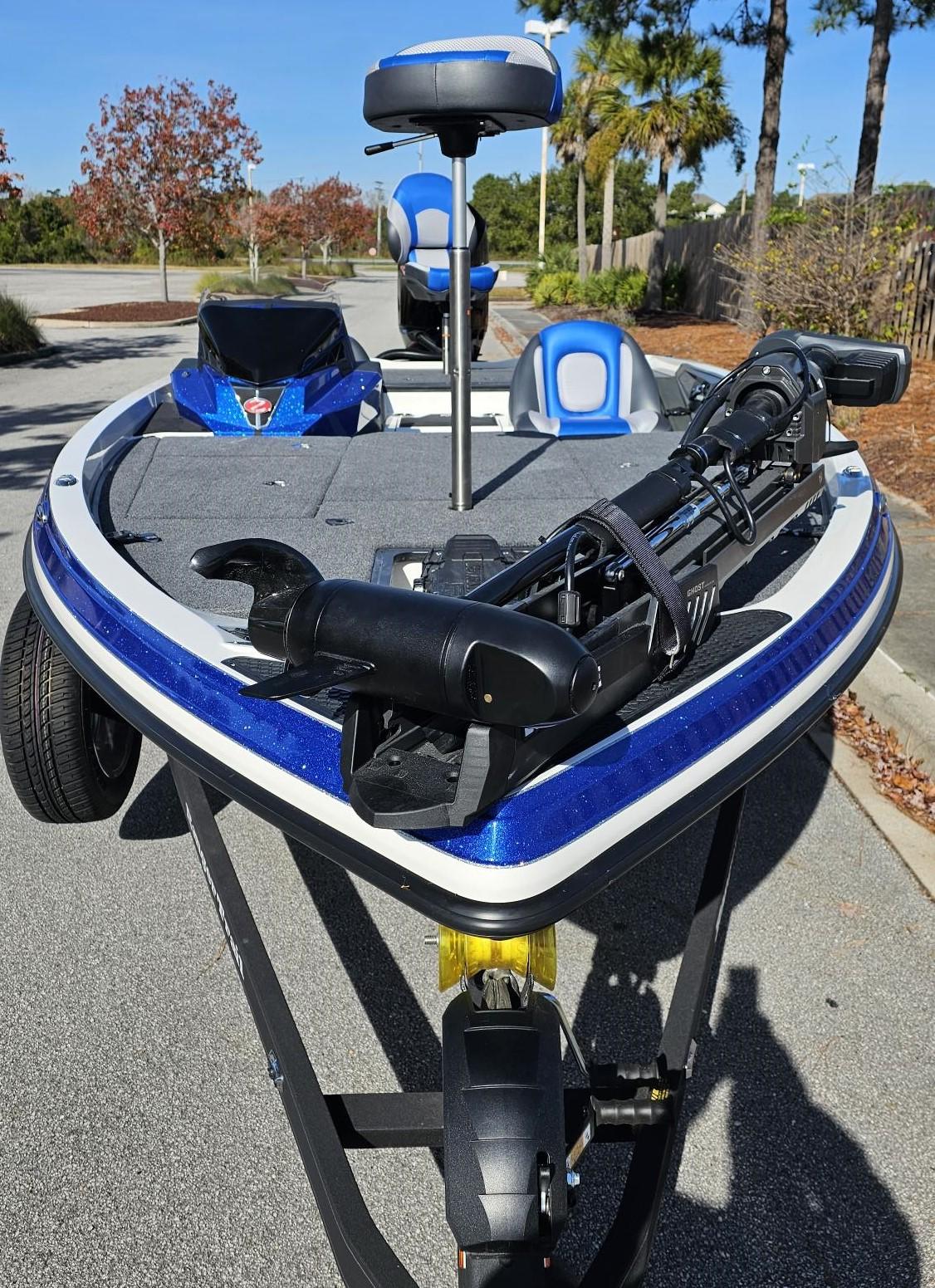 Custom Color Upgrade, Digital Gauges, Boat Cover, Trolling Motor Batteries, Black Keep Protector, LED Comp & LW Lights, Transom Saver, Single Trim Lever, LW w/ Remote Pump out, Manual Set Back Plate, BLK Chrome Wheel Upgrade, Tilt Hydraulic Steering