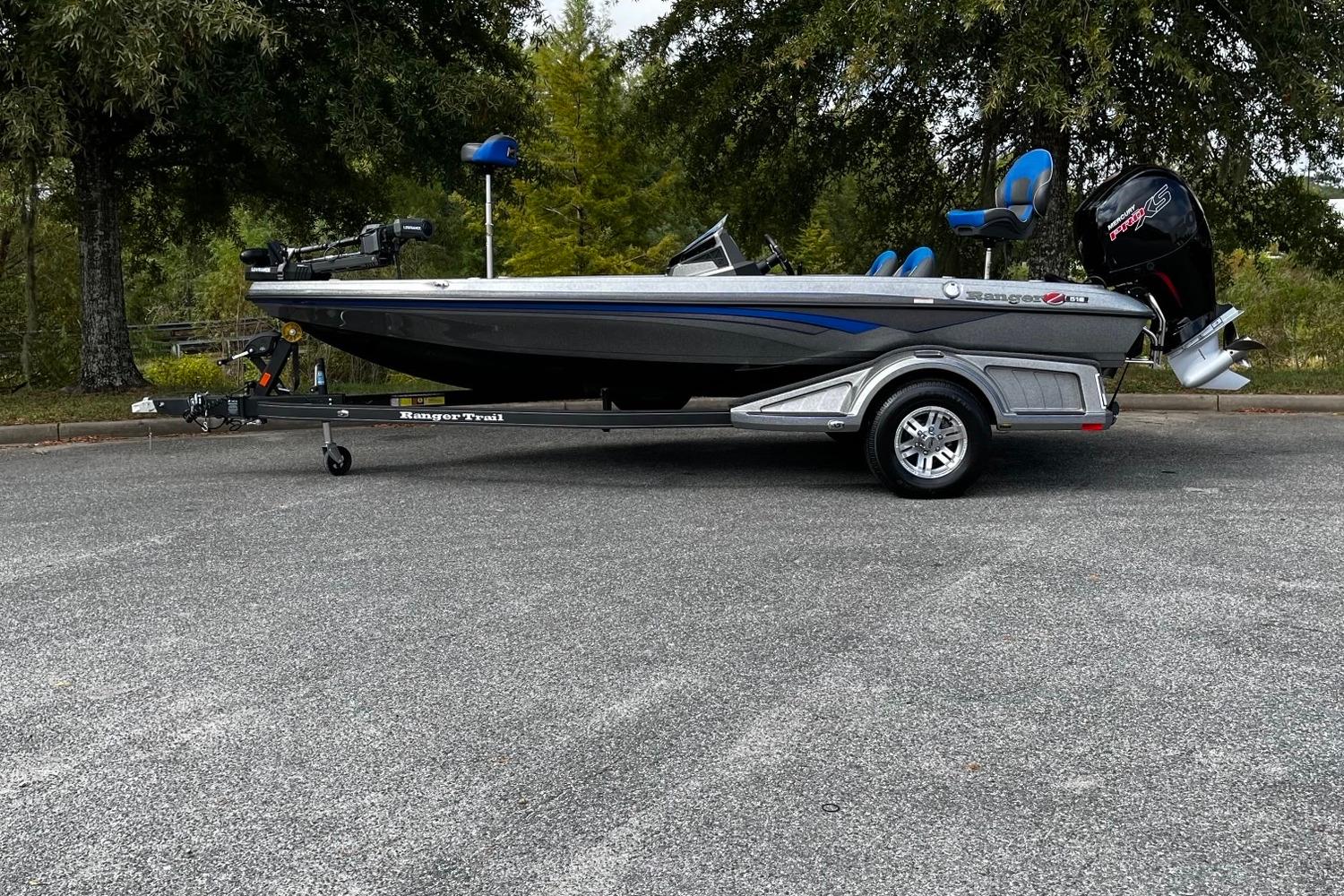 In the 18-foot class, the Ranger® Z518 stands alone in terms of all-out performance, fishability, and features. With the standard 150-horsepower Mercury®, you’ll enjoy invigorating performance and economy, but opting for the 200-horse V8 FourStroke opens the door to a new level of all-out adrenaline-pumping exhilaration. We’ve maximized storage space up front with a pair of 8-foot rod boxes, a gelcoat-lined, insulated in-deck cooler and spacious starboard gear box. The oversize casting deck and 97-inch beam deliver a stout, stable platform. A foam-filled core and strategically placed pultruded fiberglass material deliver unshakable solidity and a one-piece feel throughout. The console carries a full complement of precision gauges, the electronics of your choice up to 12” and stylish matte black accents. Integrated LED navigation lights, a recessed trolling motor pedal and SRS Soft-Ride™ seating round out this angler-centric rig that far outperforms its price tag. From daylight to dusk, the Ranger Z518 delivers features and value like none other.