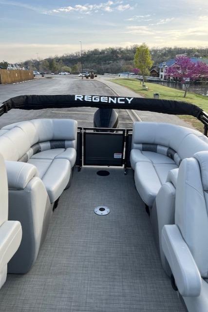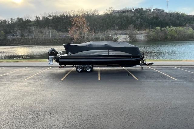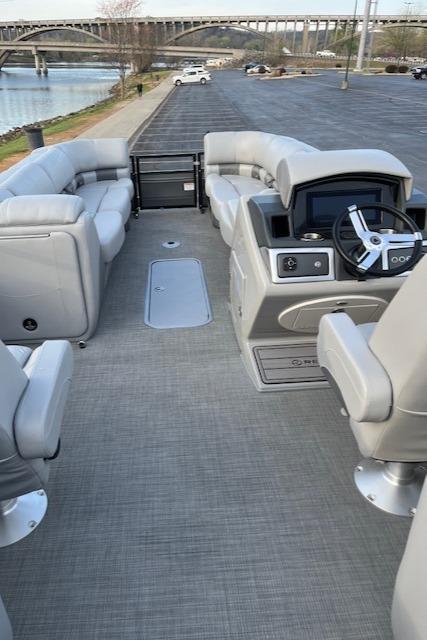 Lighted cupholders and LED foot lights add ambiance to evening cruises while bow-to-stern exterior lighting signals your presence in artful fashion. Exclusive TRACK FORMED™ fencing delivers solid, rattle-free peace of mind and head-turning appeal, with your choice of finish to match the powdercoated logs.
