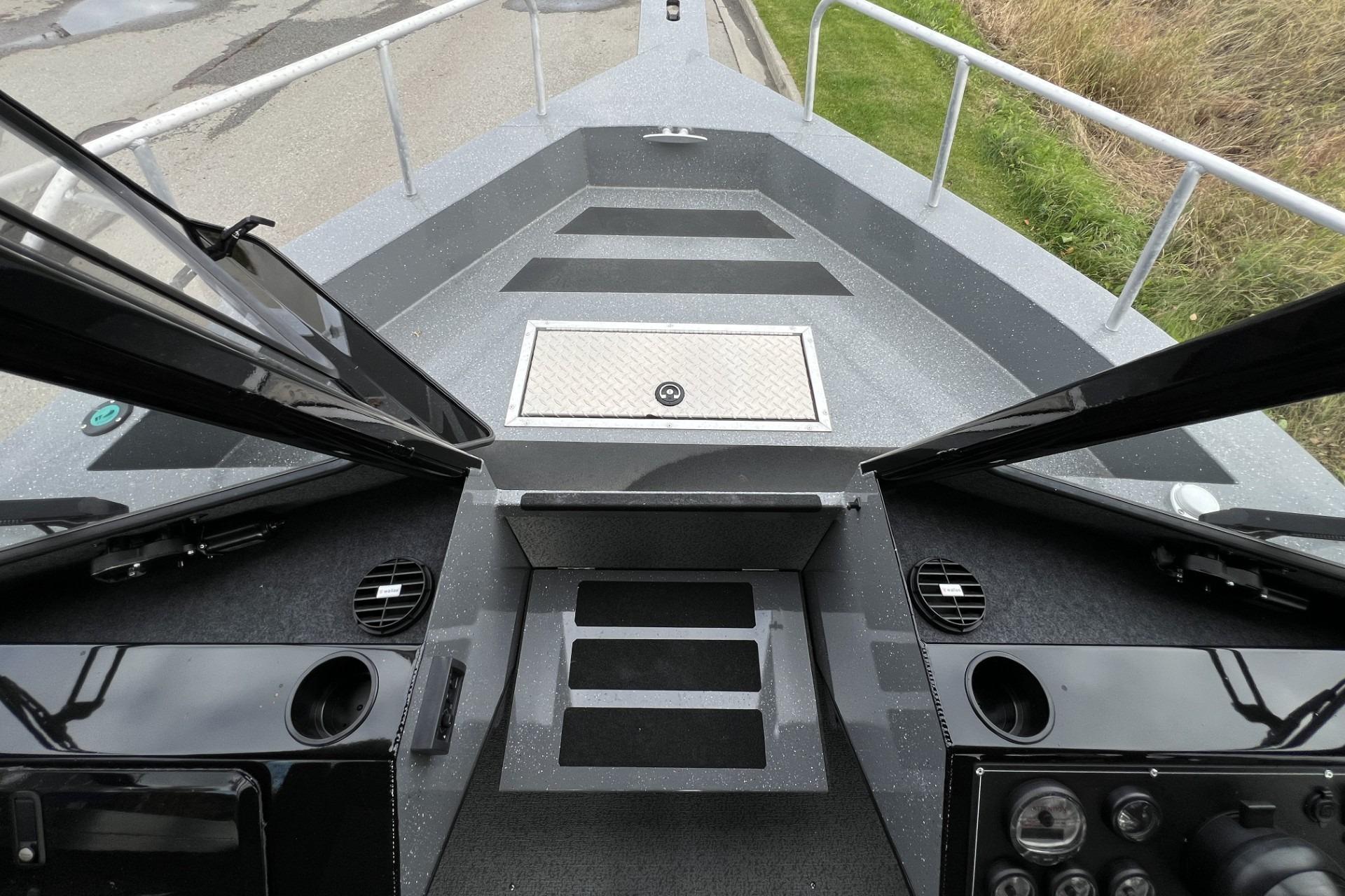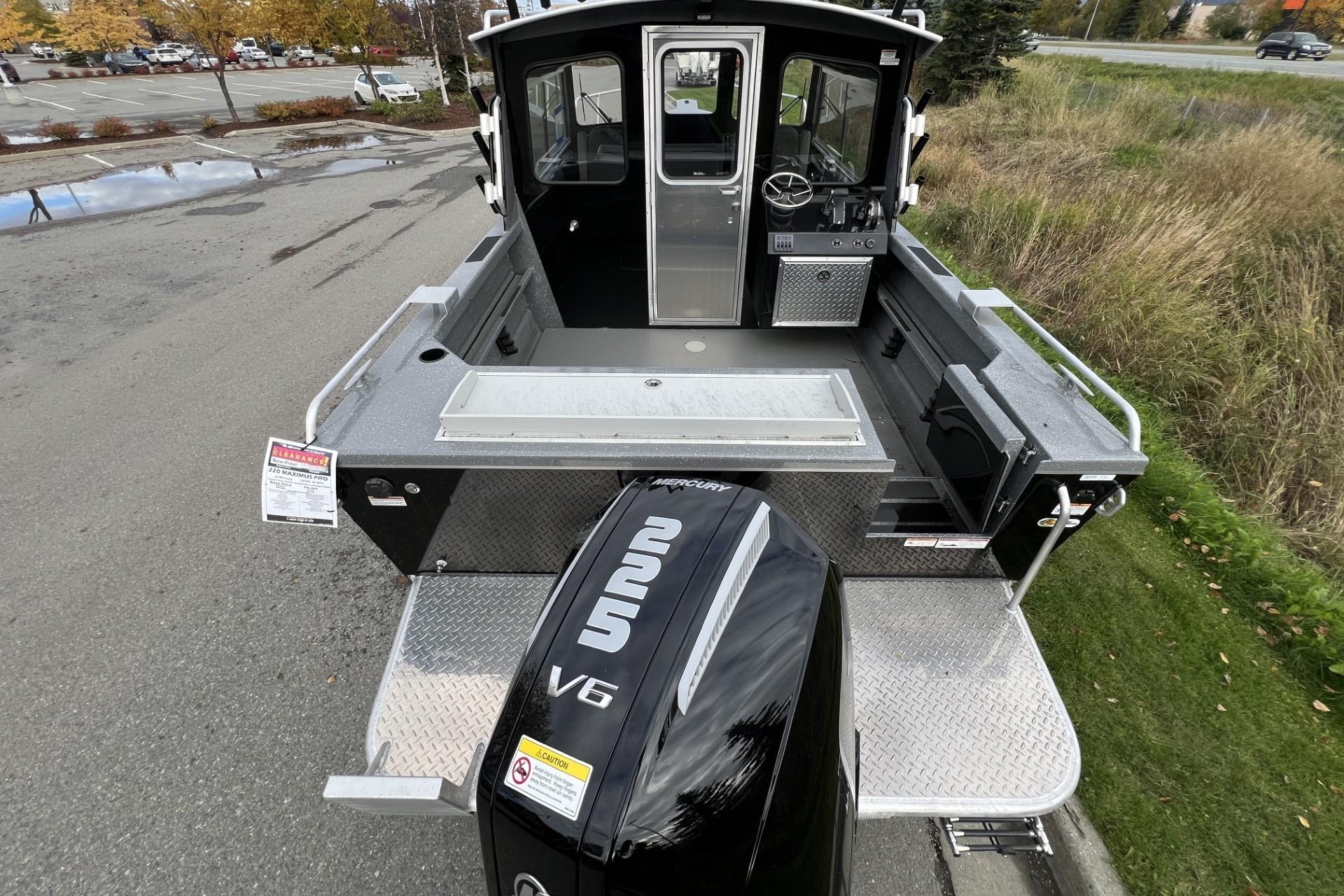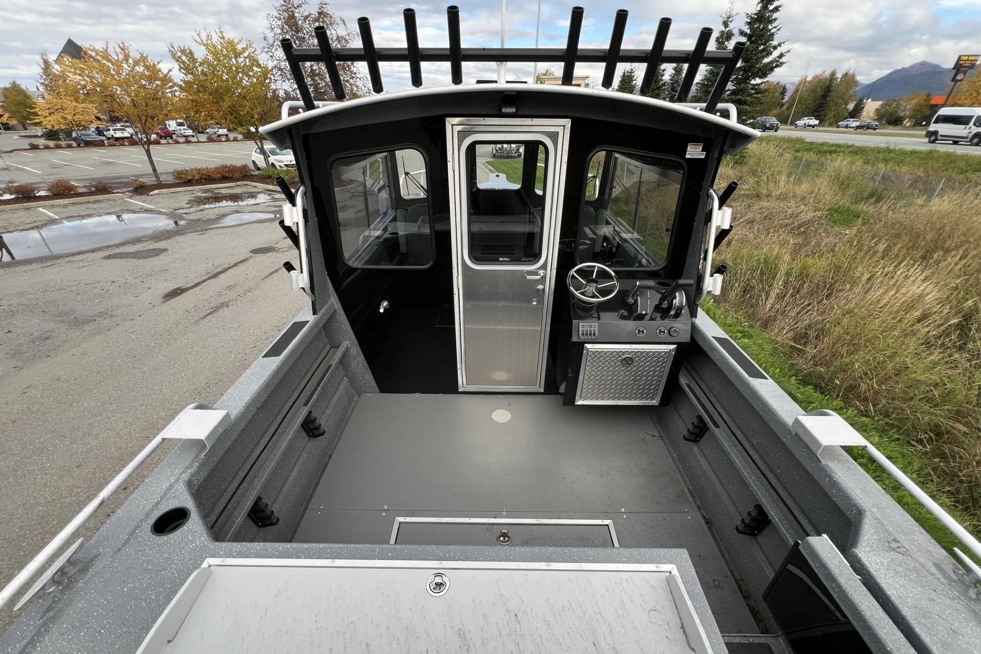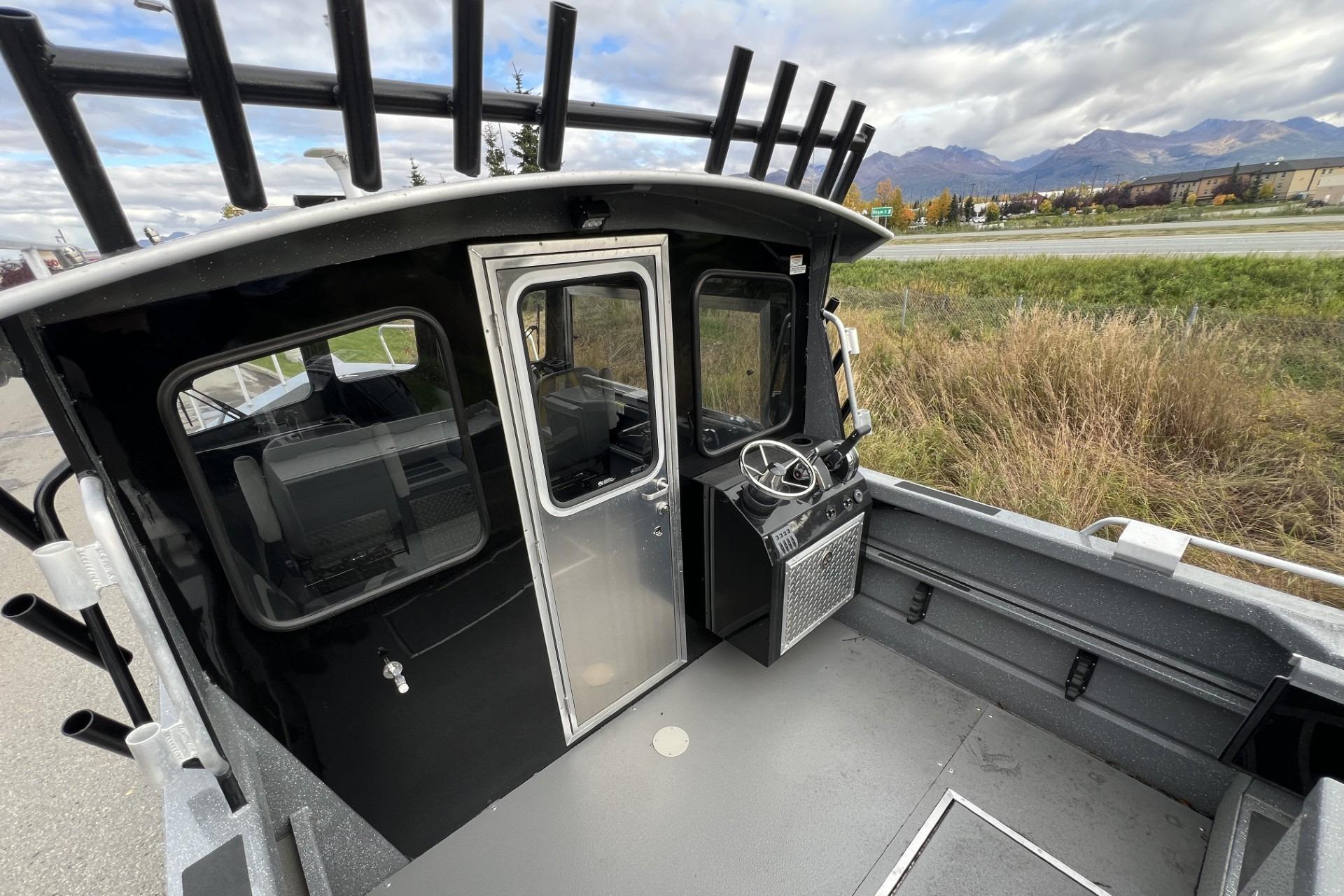 • Alaskan Package - Bulkhead w/ Swing Door; Non-Skid Cockpit Aluminum Flooring; Vinyl Covered Aluminum Transom Board; Fuel Capacity Upgrade