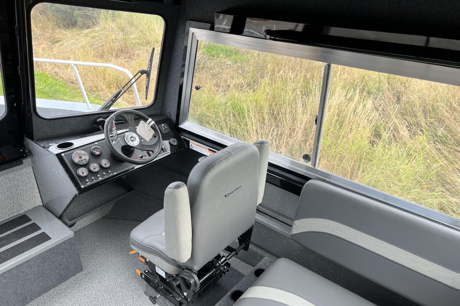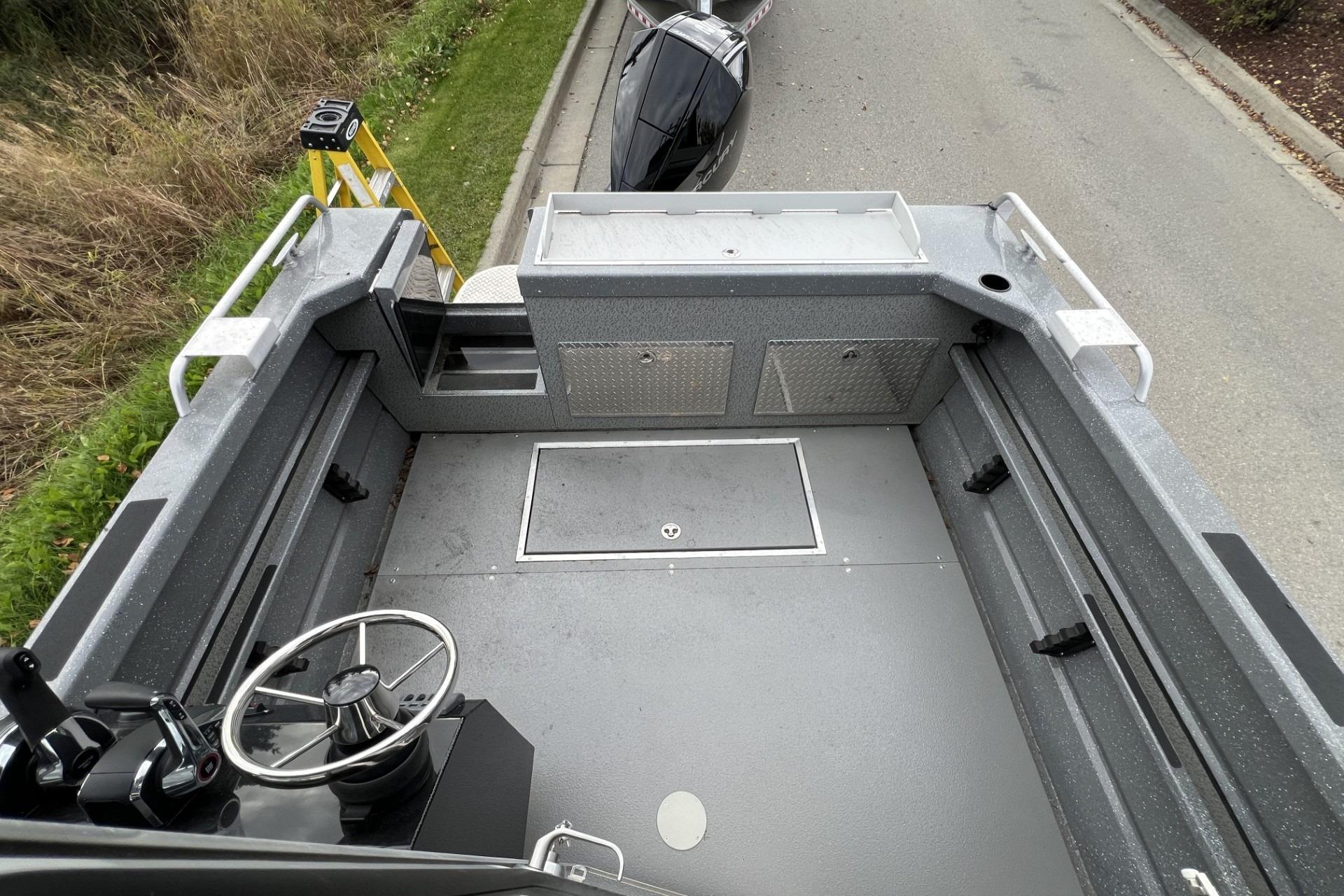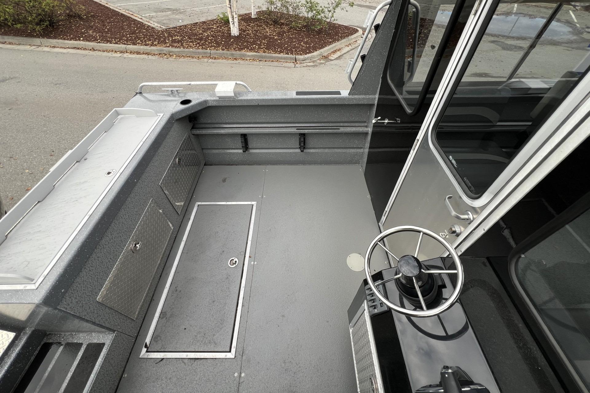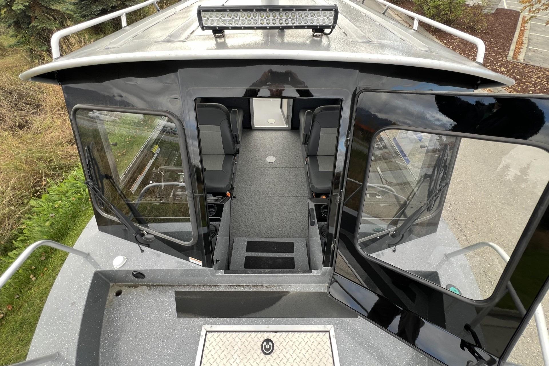 • Alaskan Package - Bulkhead w/ Swing Door; Non-Skid Cockpit Aluminum Flooring; Vinyl Covered Aluminum Transom Board; Fuel Capacity Upgrade