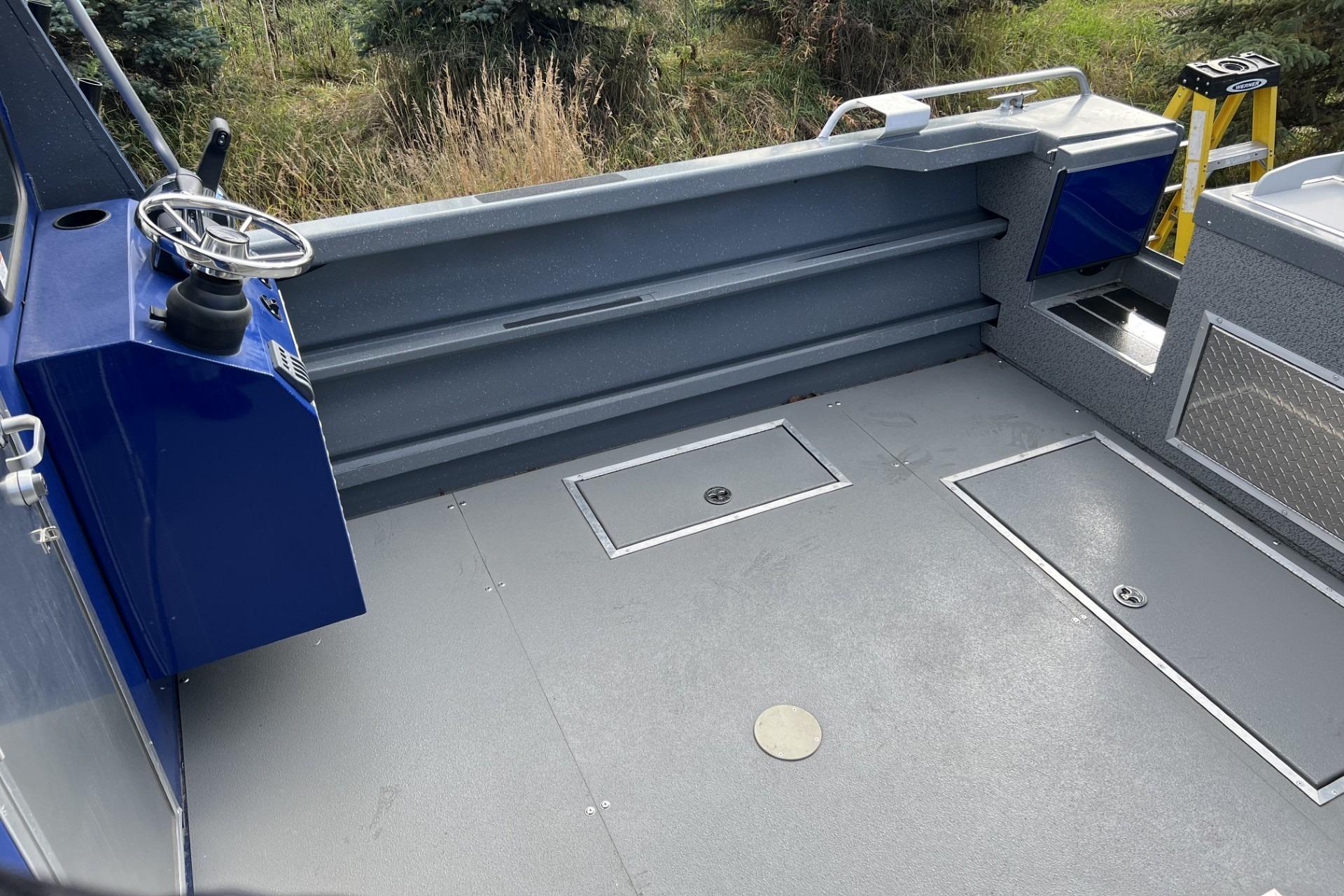 • Self-Bailing Cockpit with Non-Skid Aluminum flooring Integrated Cockpit Side Tray/ Toe Hold