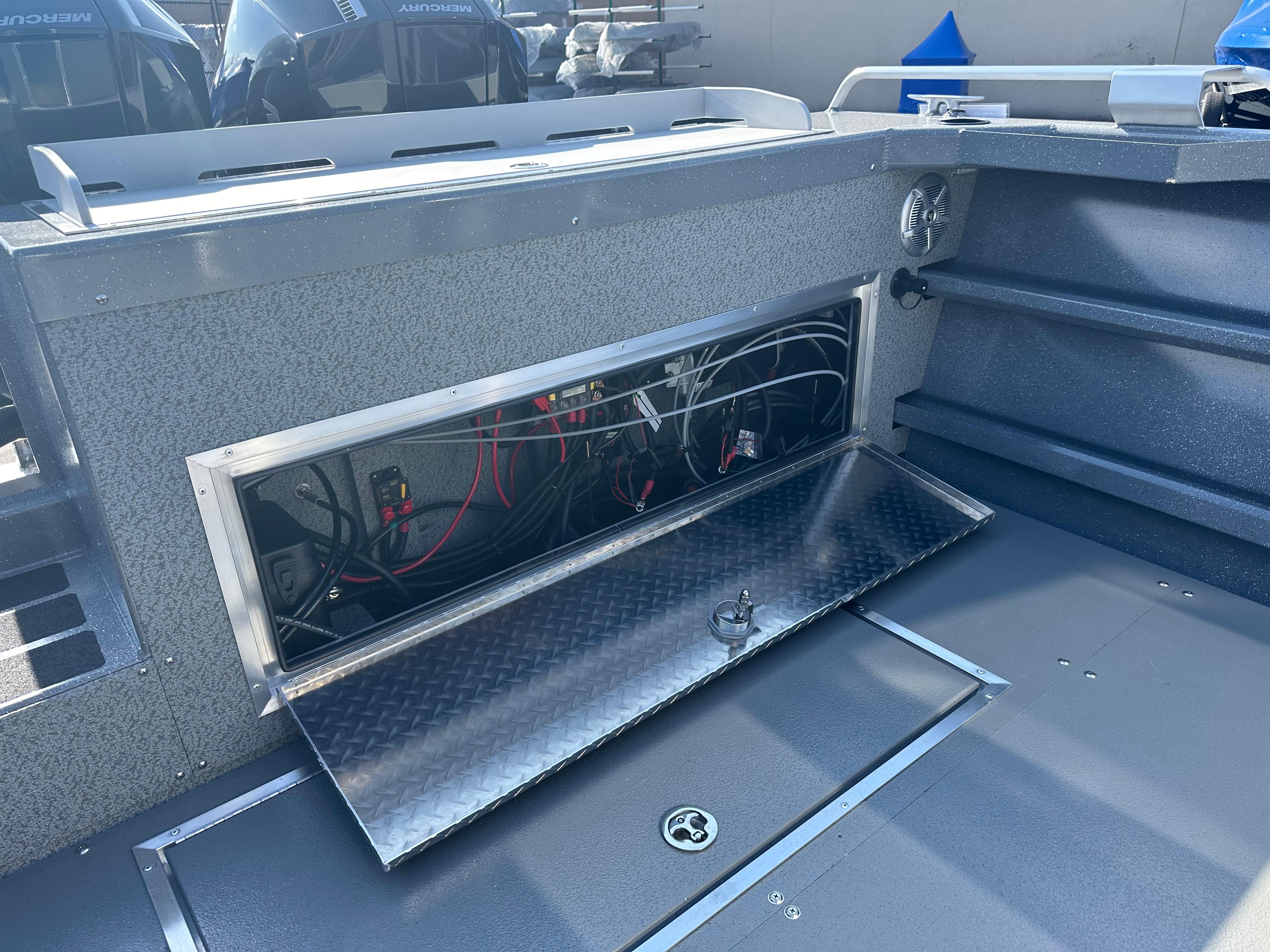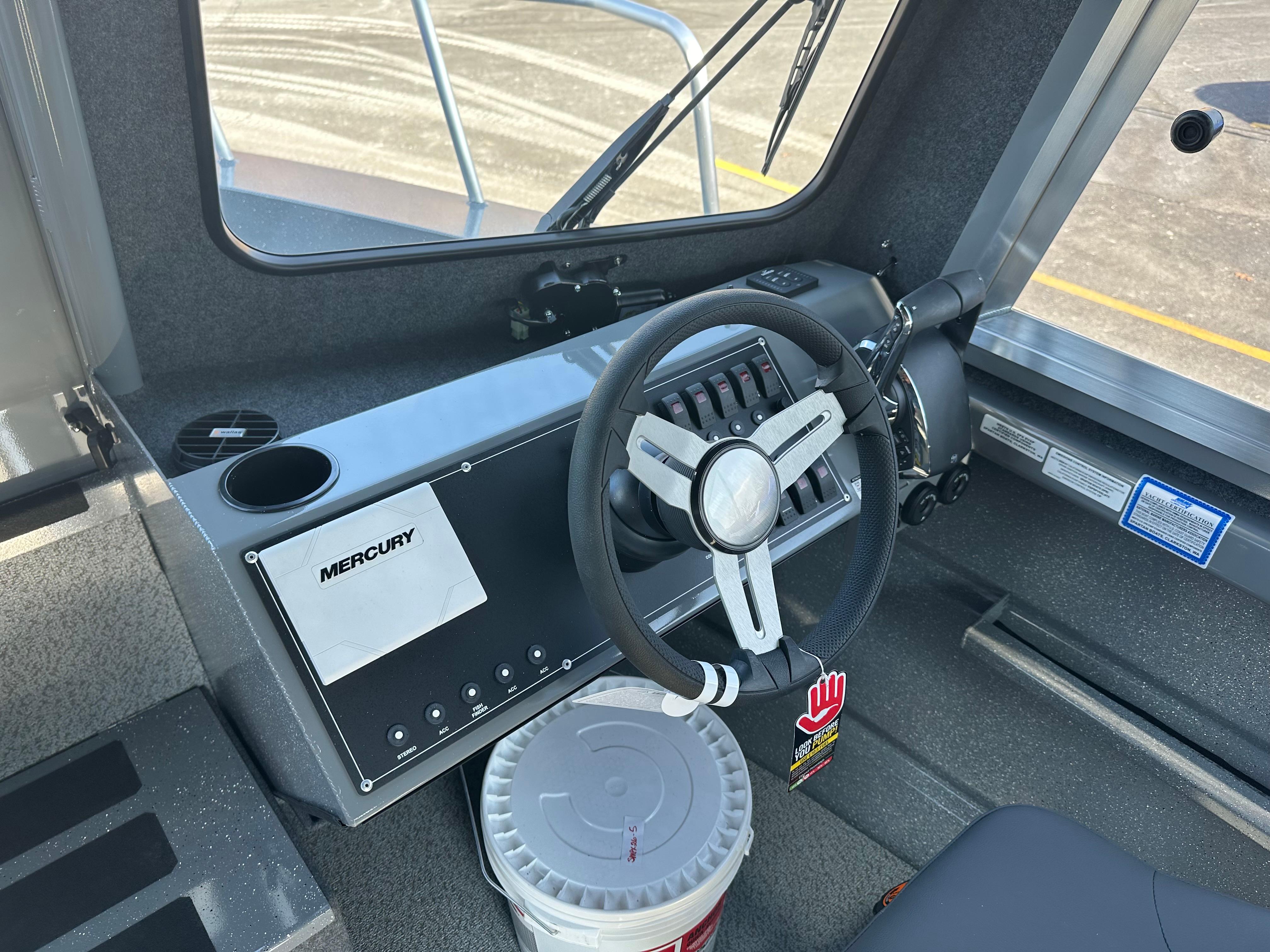 Electric Trailer Brakes Power Steering with Tilt Helm wheel Sound Dampening Package Port Hull door Electric Anchor Windlass Radar Mount (add radar) Full Hull paint and decals Suspension Seats with swivel for driver and passenger Stereo and more