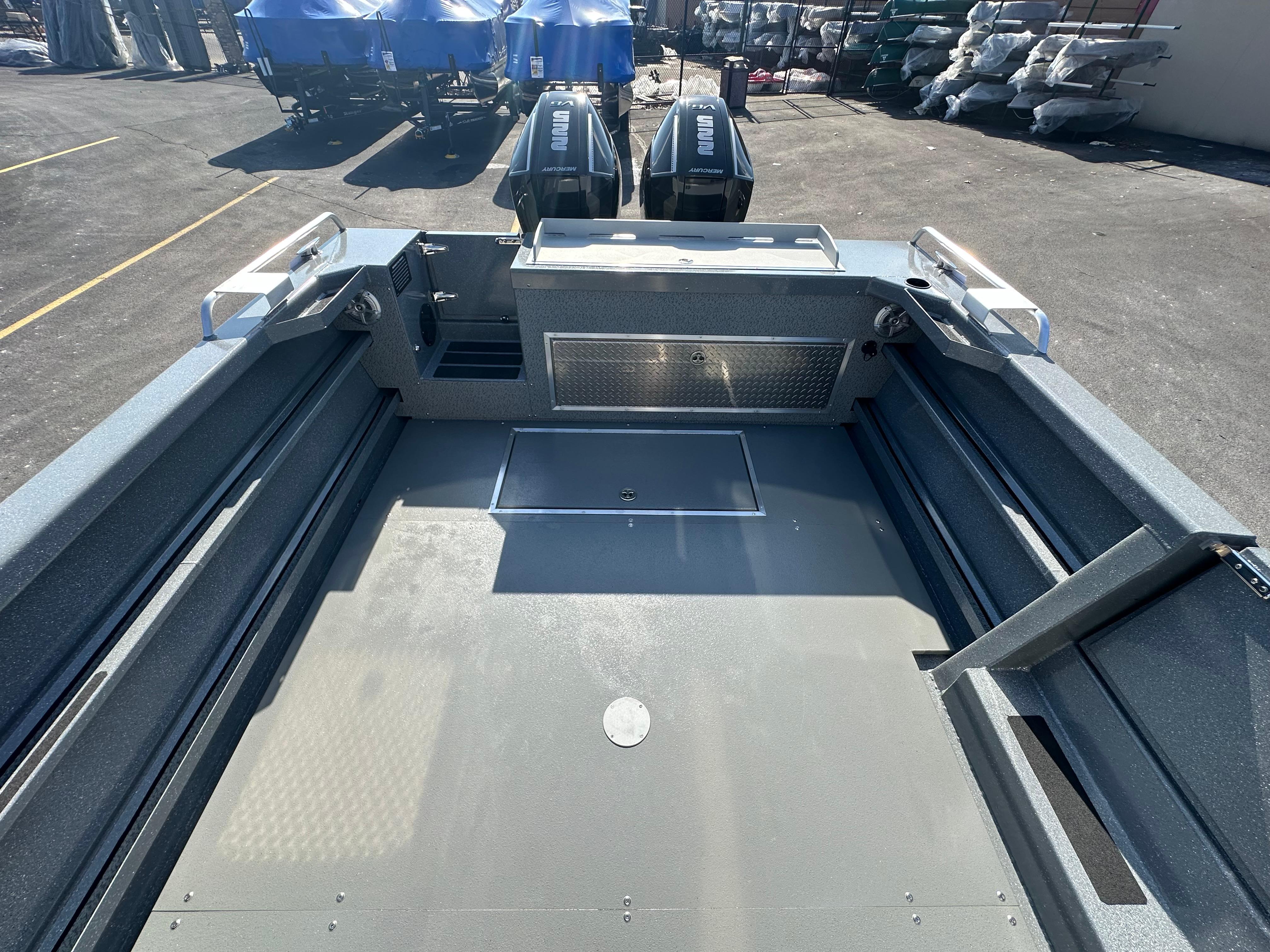 Length 26' L.O.A. 29' 10" Beam 108" Fuel Capacity 150 USG Maximum HP 500 HP Motor Length 25 " Deadrise Progressive 18° Cockpit Depth 29.5 " Max Person Capacity 10   ALUMINUM THICKNESS / ALLOY Sides 0.125 / 5052 Bottom 0.250 / 5086 Transom 0.250 / 5052 STANDARD COLOR AND GRAPHICS 1/3 Hull Side & Hard Top Paint Graphics Package Hippo-Lined Roof Speckle Painted Bow, Dash, Gunnels & Interior Side Walls & Windshield STANDARD ELECTRICAL FEATURES 2 Bank Battery Charger Aux Steering Station w/ DTS Main Engine & Kicker Controls DTS Controls 2 Eng/2 Sta Dual Electric Bilge Pumps W/ Auto Float Switch Dual Transom Battery Trays Dual USB Power Point Electric Trim Tabs LED Interior Roof Mount Strip Lighting LED Navigation Lights Package Premium Marine Wiring Harness W/ Watertight Connections Premium Switch Pane Safety Hub Power Distribution Block Vessel View Instrumentation STANDARD HULL FEATURES (4) Full Length Formed-In External Hull Stiffeners (5) Welded 8" Cleats Double Walled Self-Draining Drop Bow Extended Running Surface Bottom Full Length Engineered Box Stringers Full Length Offshore 5” Reverse Chine Fully Welded Heavy-Duty Keel Guard Hardtop Side Mounted Rod Holders (3) Port/ Stbd Large Fully Welded Bow Drains Locking Self-Draining Bow Locker Net Holder Port/ Stbd One Piece Hull Sides W/ Wide Wraparound Seamless Gunnels Progressive Offshore Hull W/ Upswept Bow Roof Mounted Rod Rack (10) Self-Bailing Cockpit with Non-Skid Aluminum flooring Integrated Cockpit Side Tray/ Toe Hold Starboard Transom Door Transom Fish Locker W/HDPE Lid W/ Stainless Locks & Backsplash Twin Engine Bracket std on 26’ optional on 24’ Welded 14” Bow Rails Welded 4” High Stern Rails Welded Bow & Transom Eyes Welded Bow Pulpit Welded Downrigger Mounting Pads Welded External Motor Bracket Welded Full Width Transom Platform W/ Undermount Telescoping Ladder Welded Platform Kicker Bracket Welded Thru-Hull Fittings STANDARD INTERIOR FEATURES (2) 39" Storage Box Bench Seats W/ Removable Backrests (2) Full Length Hard Top Interior Storage Trays (2) Full Length Welded Side Storage Trays (2) Locking Interior Transom Access Hatches (2) Seats on Pedestals W/ Locking Swivel (4) Interior Rod Holders (6) Cup Holders Adjustable Driver’s Seat Slider Alaskan Bulkhead w/ Swing Door Bow Step W/ Non-Skid Surface & Netted Storage Hydraulic Steering W/ Tilt Helm Locking Aft Cockpit Floor Storage Compartment Locking Forward In-Floor Rod Storage Compartment Locking Glove Box Premium Marine Vinyl Decking Stainless Steel Rubber Coated Steering Wheel Under Dash Netted Storage Welded Passenger Grab Rail WINDSHIELD / WINDOW FEATURES Heavy Duty External Set 1/4" Safety Glass Windows Lexan Shatter Proof Hinged Center Window Pantographic Self-Parking Driver & Passenger Side Windshield Wipers Welded 3 Piece Walk-Thru Windshield Welded High Mount Windshield Grab Rails
