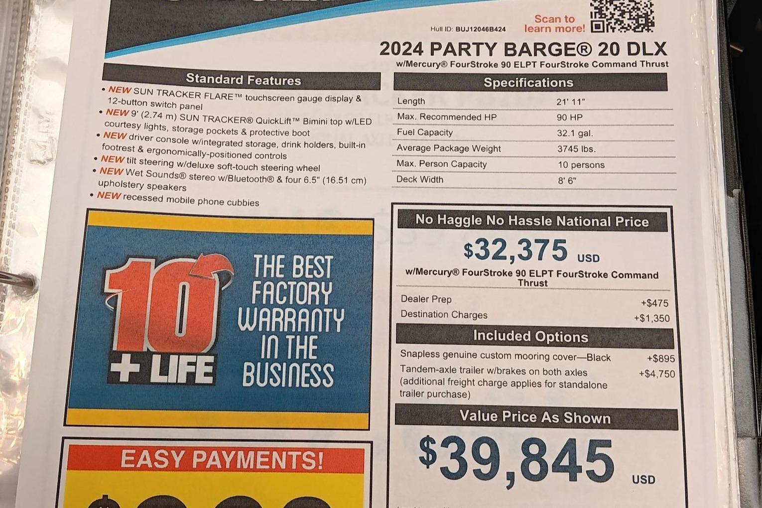 Included Options - Mooring Cover, Tandem Axle Trailer w/ Brakes