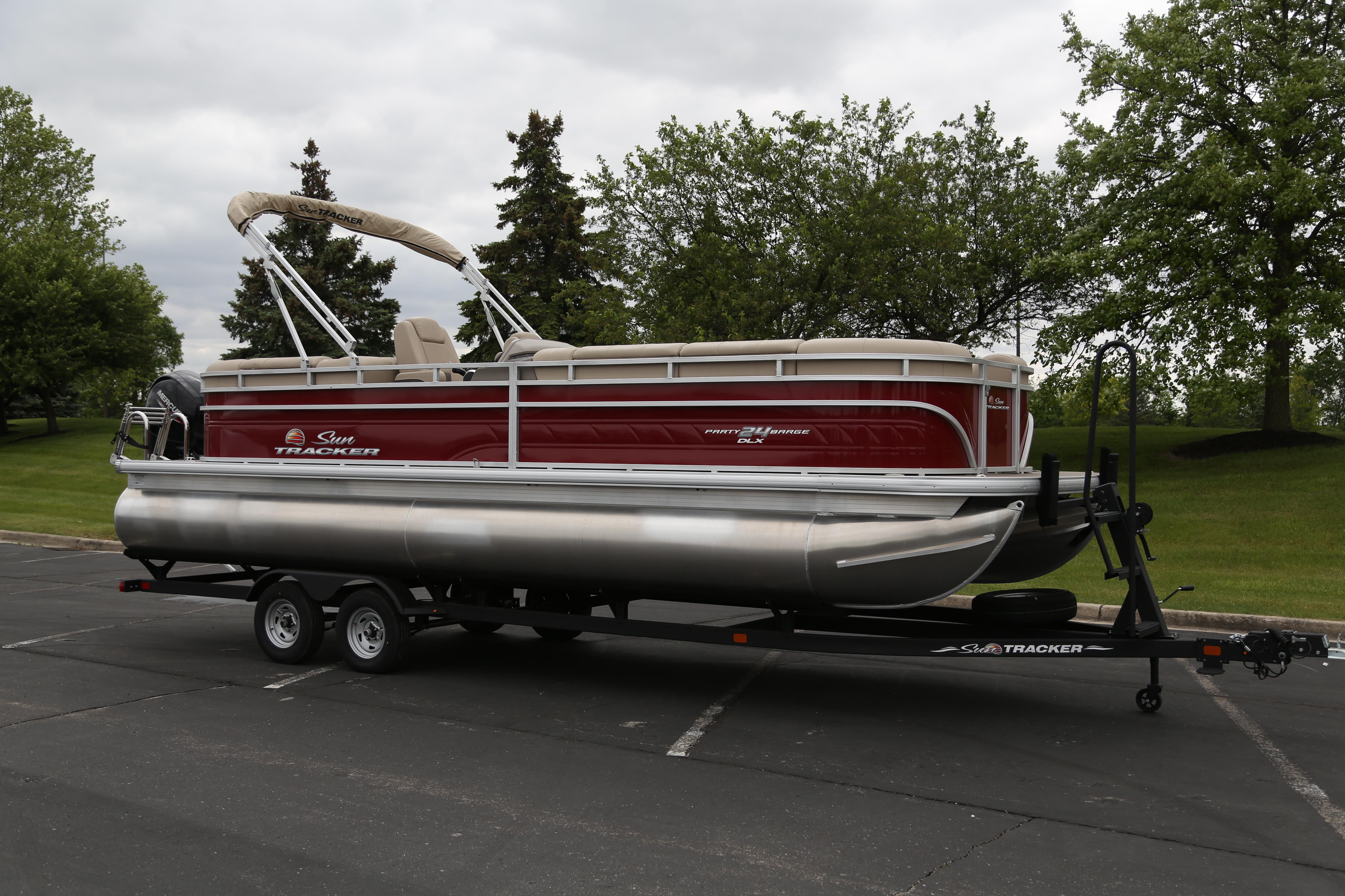 • 10' (3.05 m) SUN TRACKER® QuickLift™ Bimini top w/LED courtesy lights, storage pockets & protective boot (color-coordinated Black w/Charcoal fencing or Sand w/Copper Red fencing)