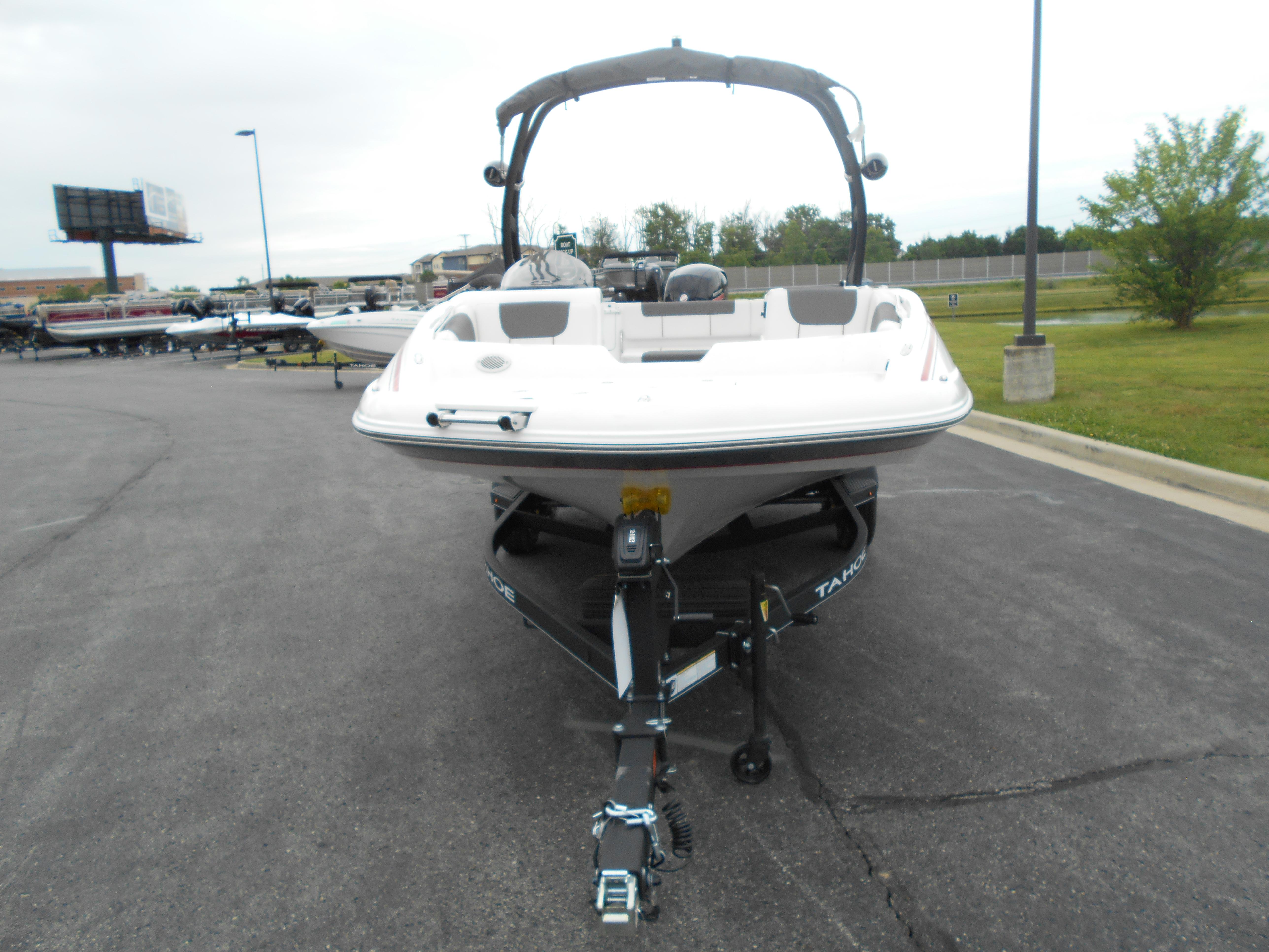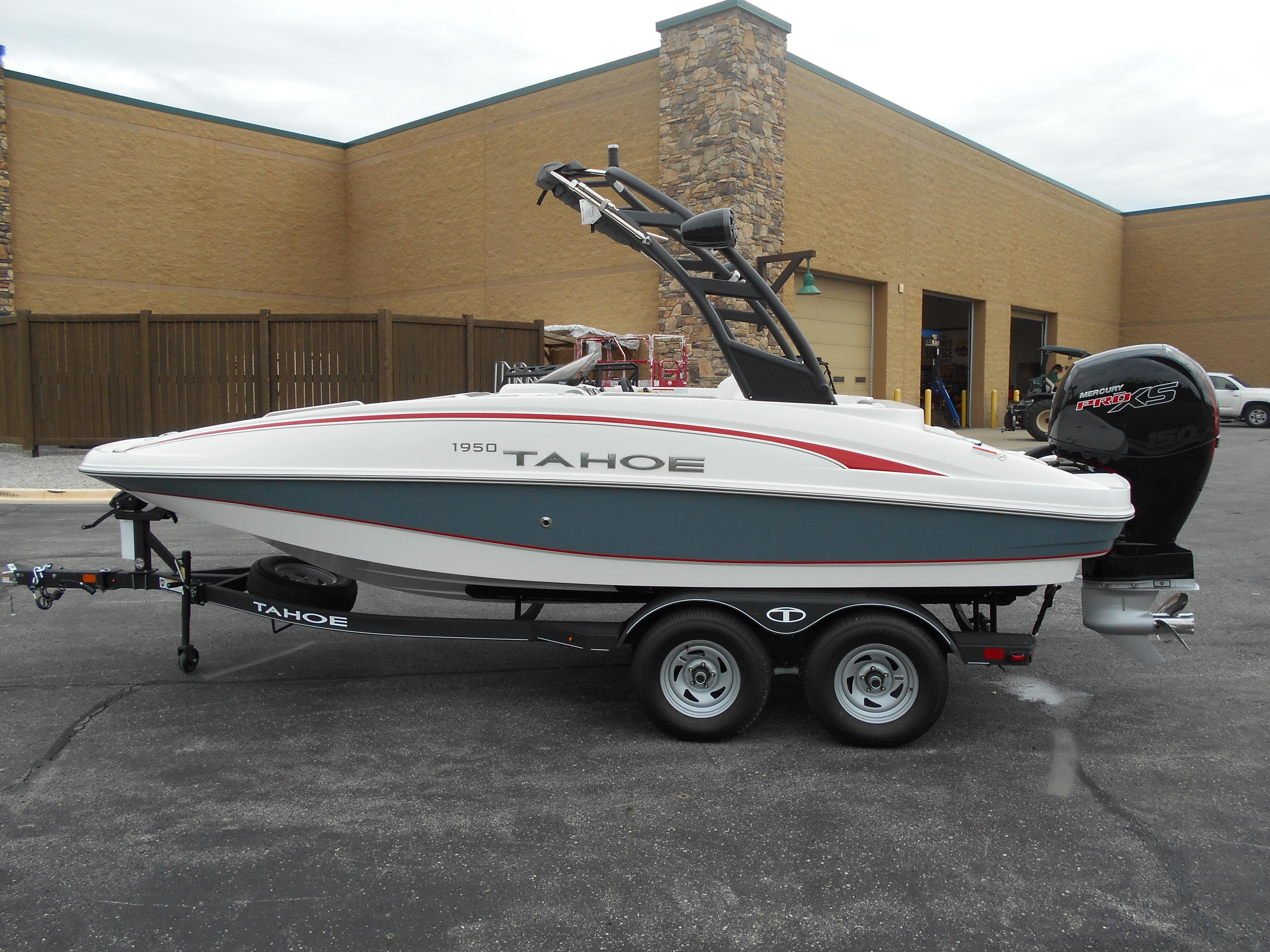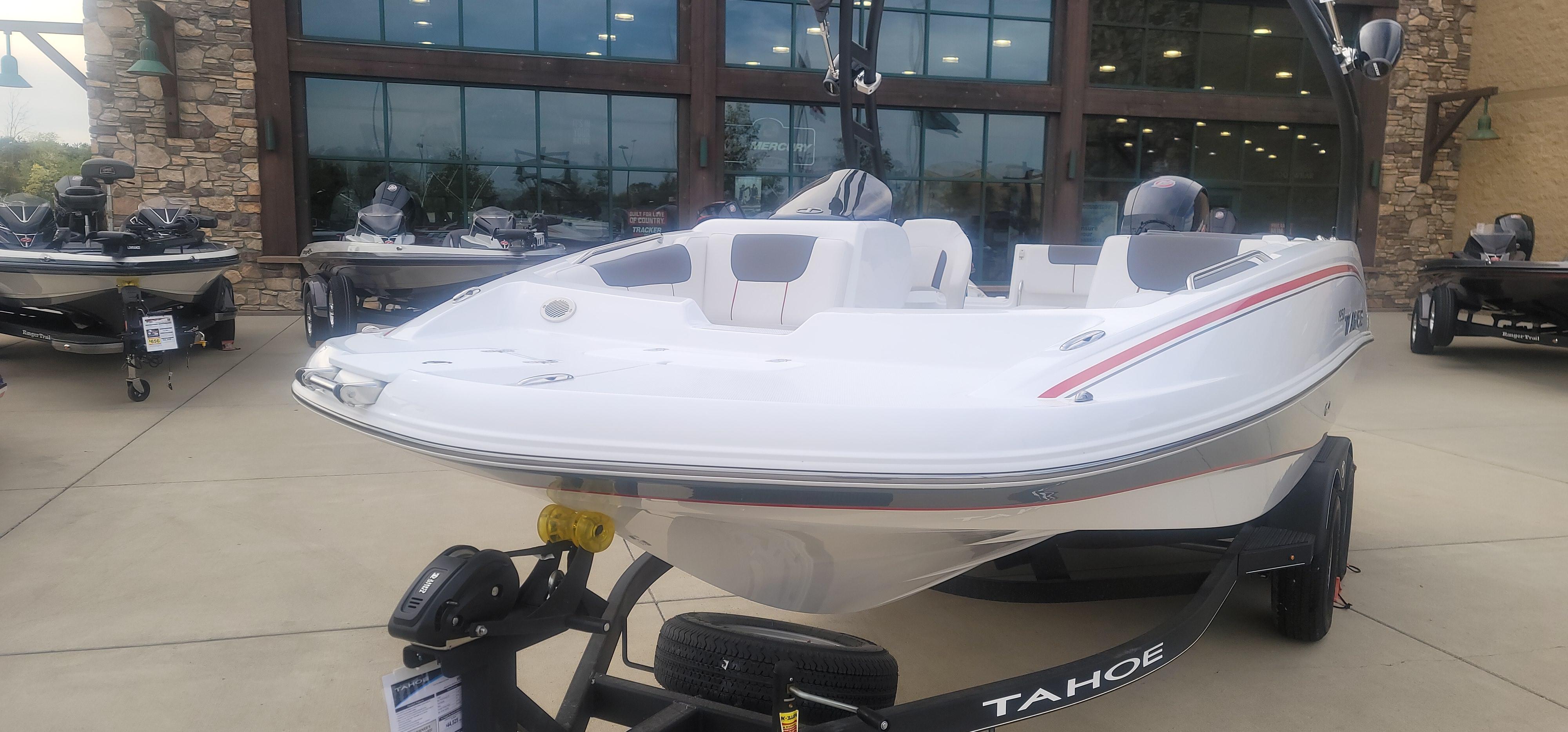 The TAHOE® 1950 deck boat lets you experience summer the right way—on the water with family and friends in bountiful luxury with exhilarating performance. Let your crew spread out on the ample lounges and benches, conveniently stowing all manner of gear throughout. At the helm you’ll find simple, reliable switching and gauges that keep you in the know at all times. A 36-qt. removable cooler keep things icy cold but when it’s time to fire it up, stout outboard power is a shove of the throttle away.