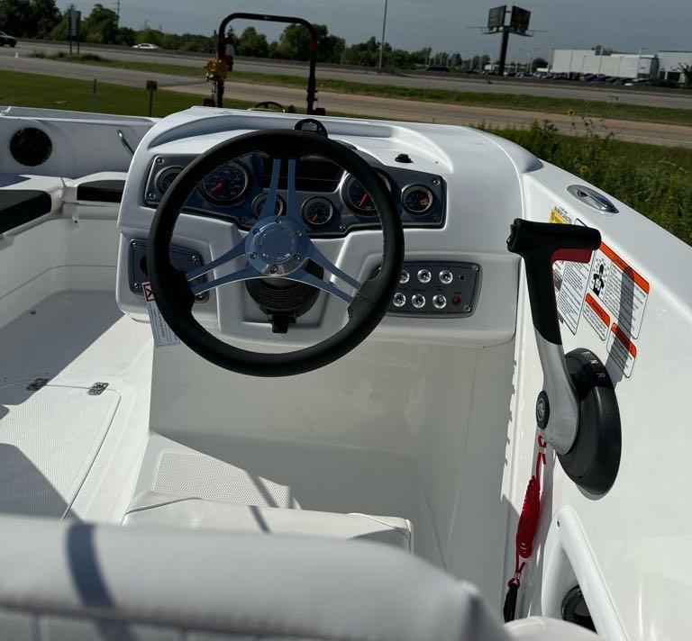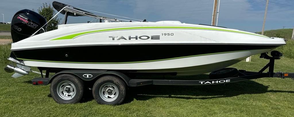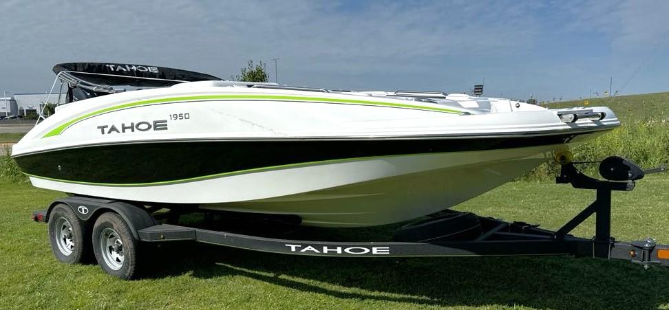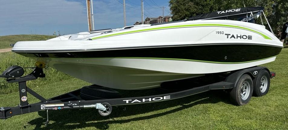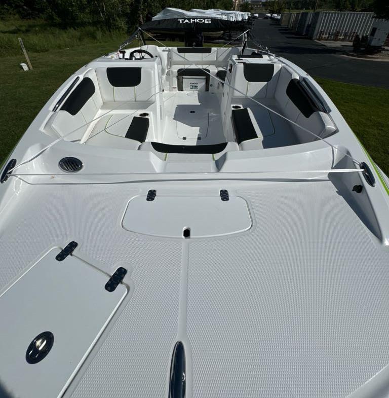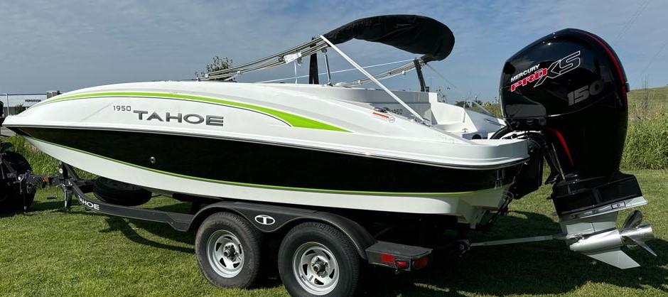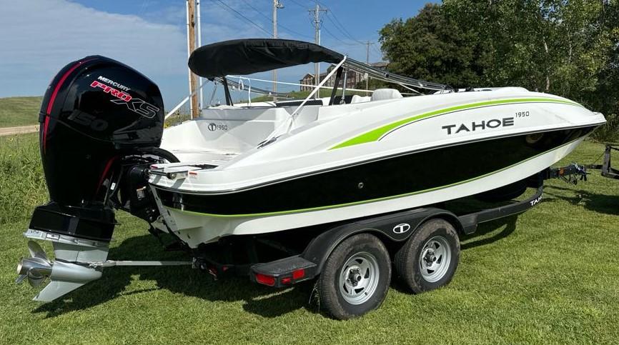 The TAHOE® 1950 deck boat lets you experience summer the right way—on the water with family and friends in bountiful luxury with exhilarating performance. Let your crew spread out on the ample lounges and benches, conveniently stowing all manner of gear throughout. At the helm you’ll find simple, reliable switching and gauges that keep you in the know at all times. A 36-qt. removable cooler keep things icy cold but when it’s time to fire it up, stout outboard power is a shove of the throttle away.