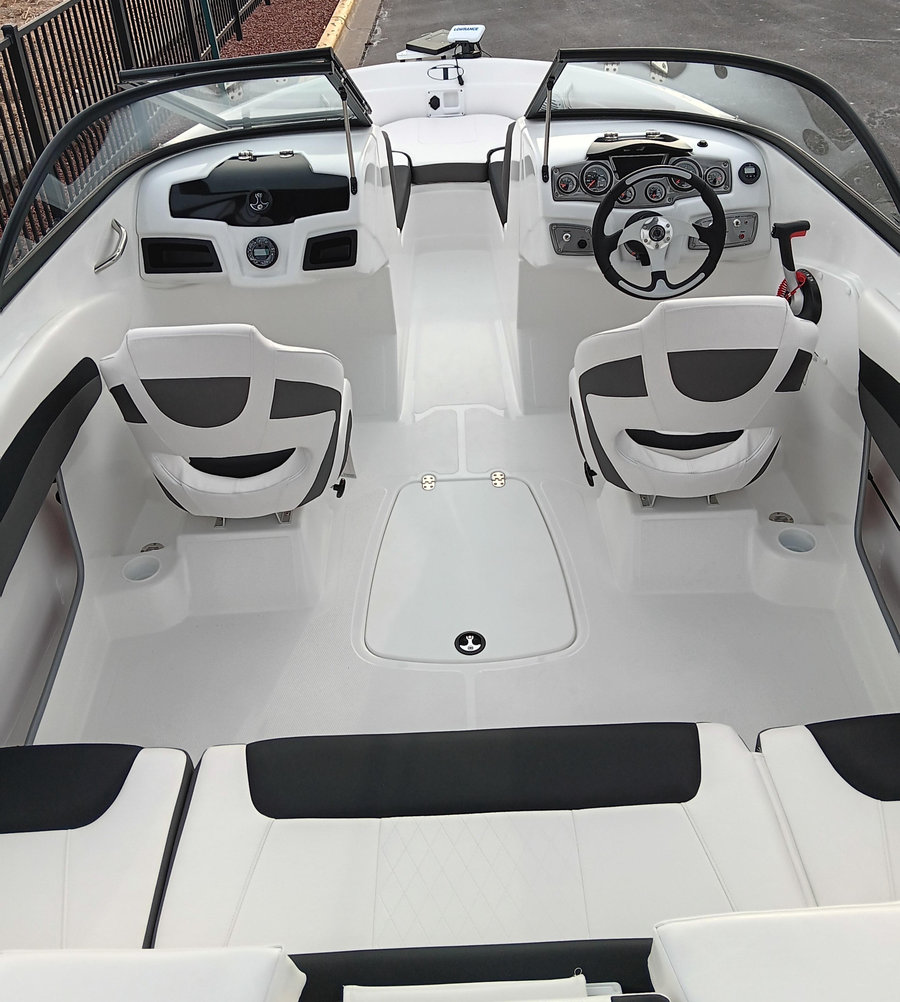 • Helm console w/speedometer, tachometer, fuel gauge, trim gauge, water pressure gauge & voltmeter