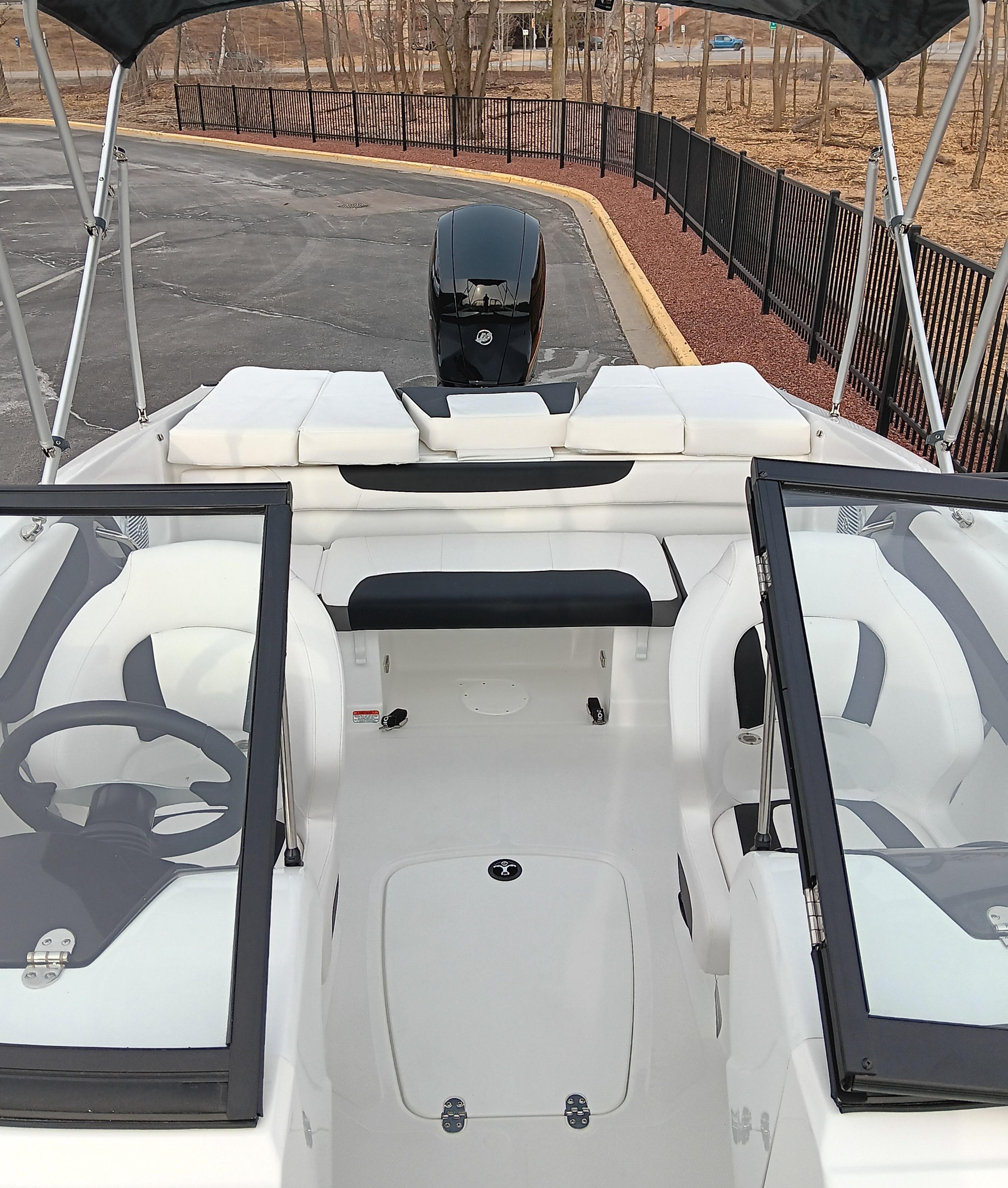 • Bow port & bow starboard backrests flip up to provide access to console storage