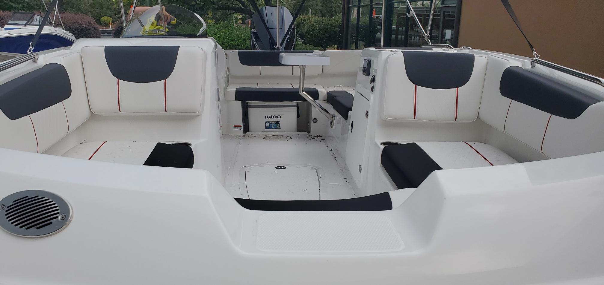 • Aft L-lounge w/storage, tow rope holder & removable 25-qt. (23.66 L) cooler