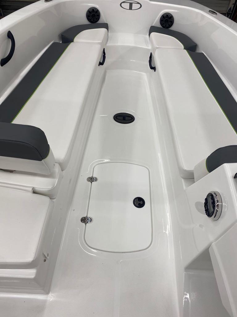 The TAHOE® T18 is a midsize runabout that boasts exciting performance, standout-style, and all-day comfort. From the handcrafted composite construction to the custom seating, the T18 is designed to be a family-fun machine that’s ready for cruising sandbar picnic or watersports action. A standard Kicker® stereo and four speakers crank up the tunes while a new 7” touchscreen multifunction display keeps tabs on your outboard, speed and the water depth. Premium accents, ample amenities and guaranteed fun will have you looking for reasons to get to the lake.
