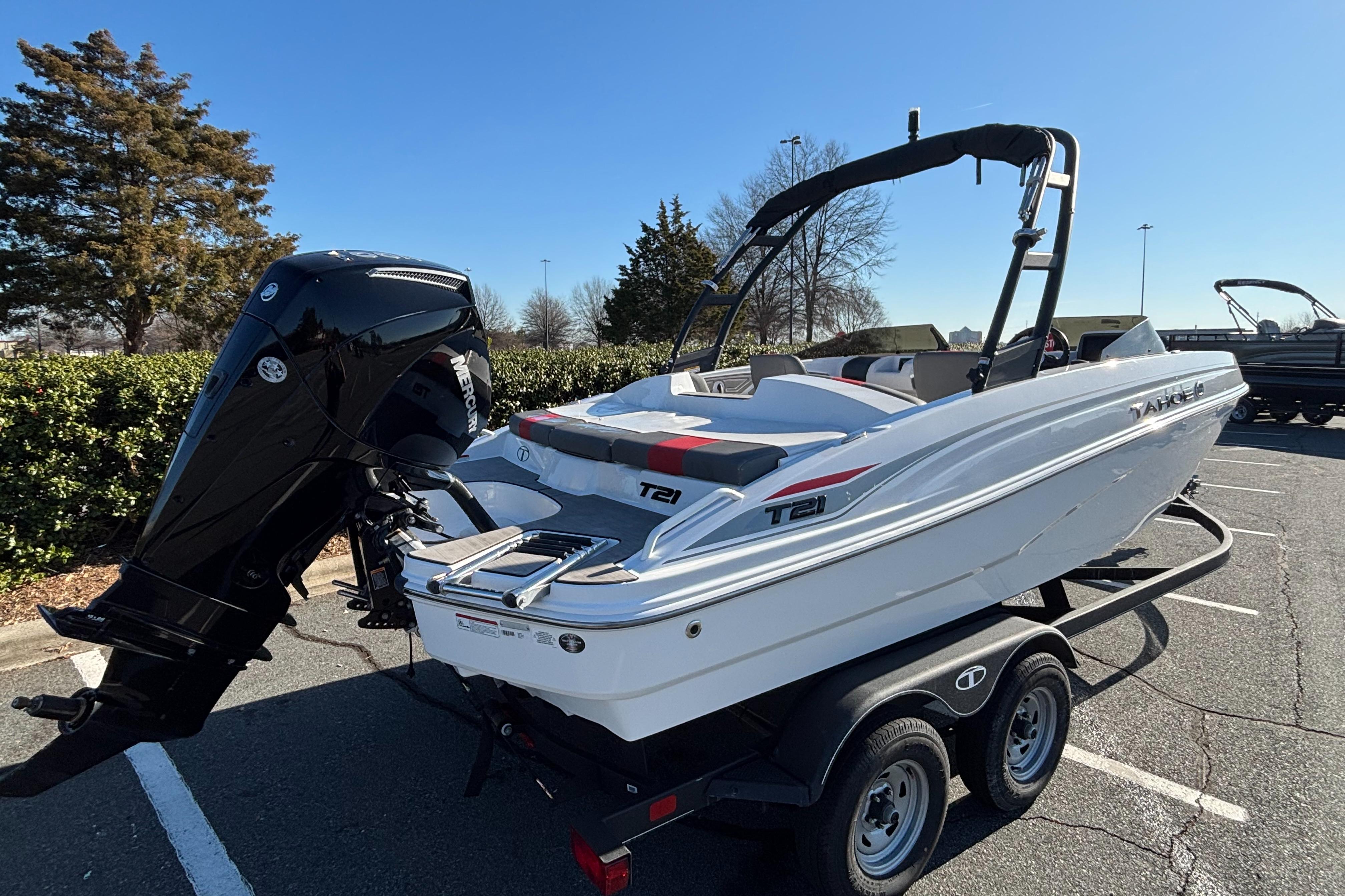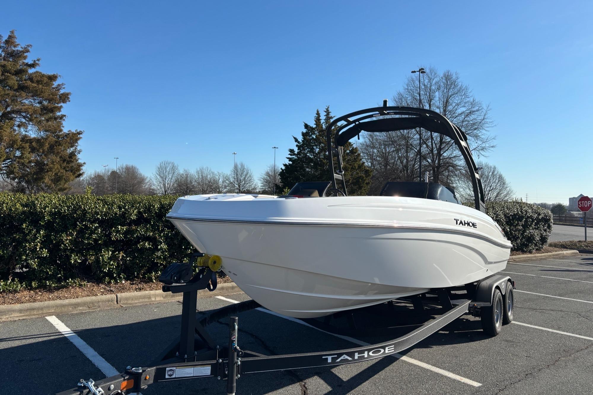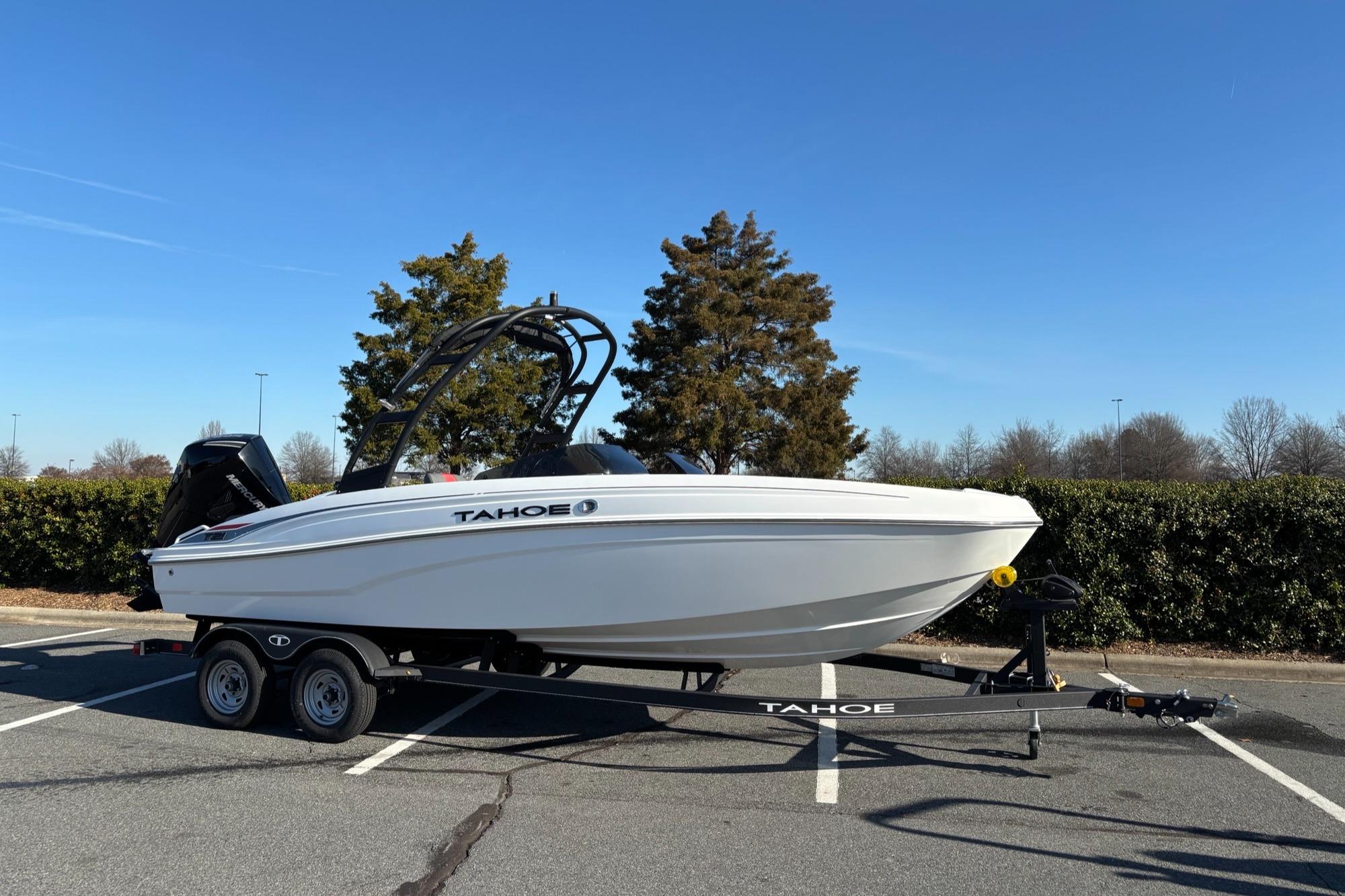 2024 Tahoe T21 with a 200hp outboard motor and tandem axle trailer with brakes.