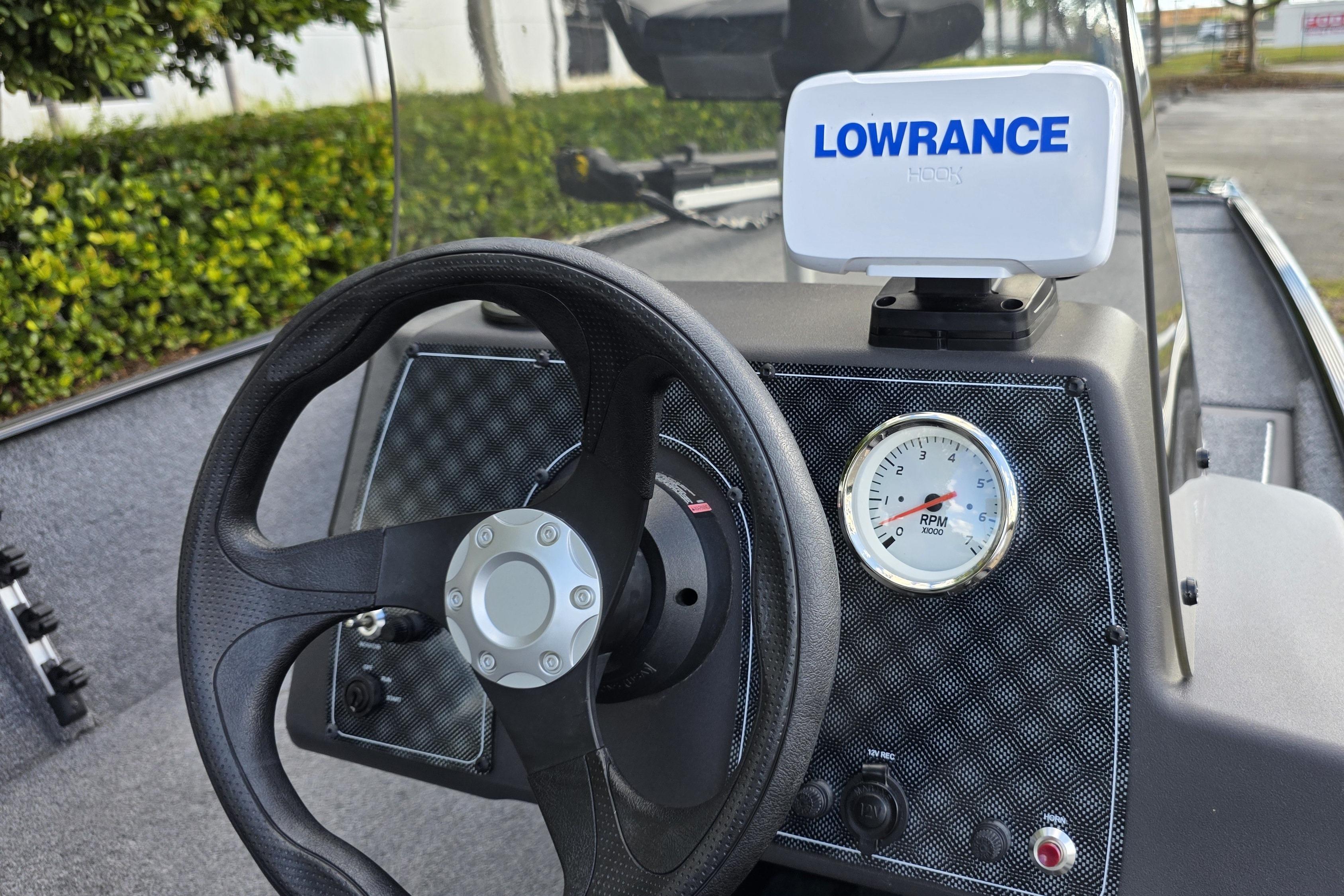 • 1-piece rotomolded console w/tinted windscreen, integrated livewell, drink holder & 12V outlet