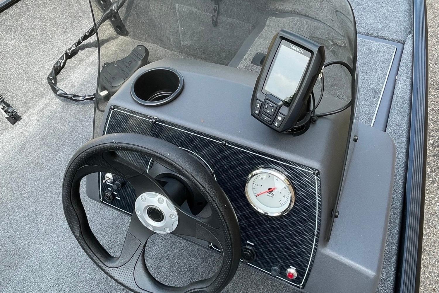 • 1-piece rotomolded console w/tinted windscreen, integrated livewell, drink holder & 12V outlet