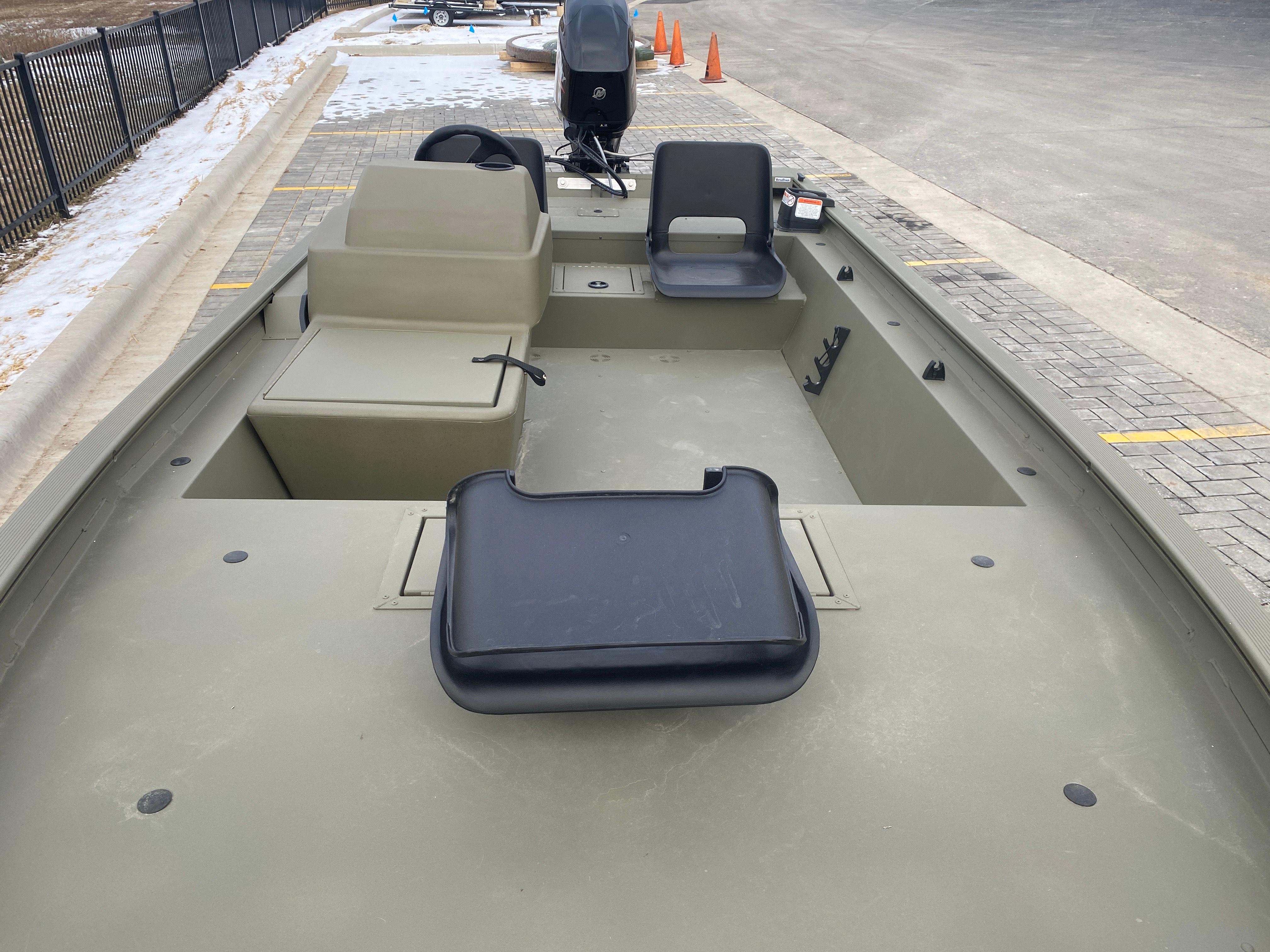 At 17' 1" and 6' 6" wide, the TRACKER® GRIZZLY® 1754 SC is a spacious and stable aluminum jon boat that can be powered by up to a 75HP motor. This versatile boat sports a lockable bow deck storage compartment, 7° deadrise for a smooth, dry ride, solid .190 aluminum floor and welded-in, foam-filled sides for added structural integrity and reduced hull noise.