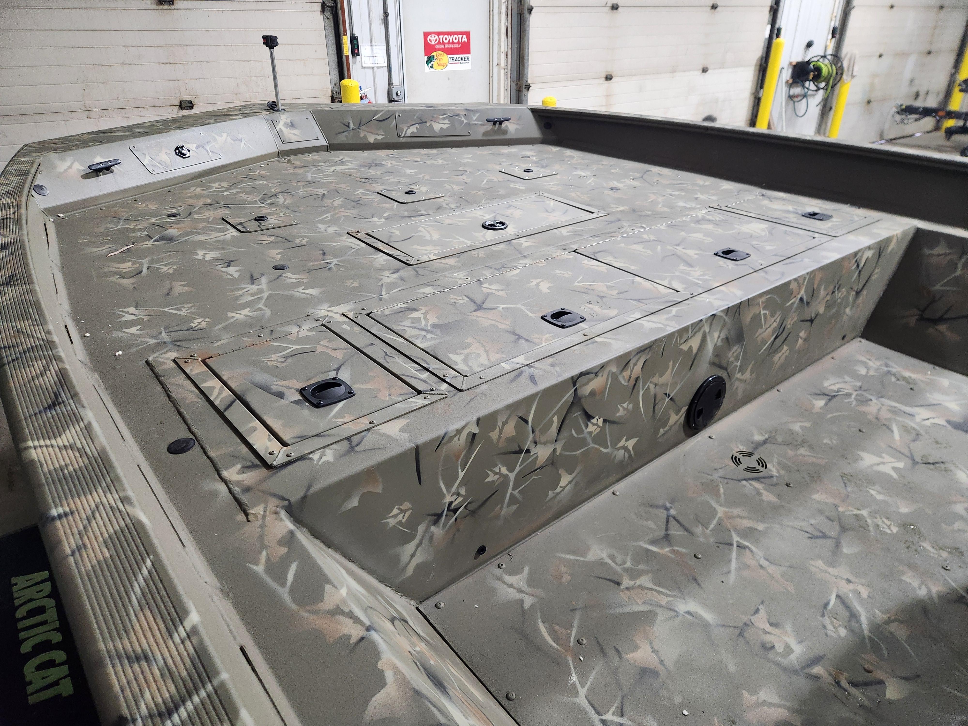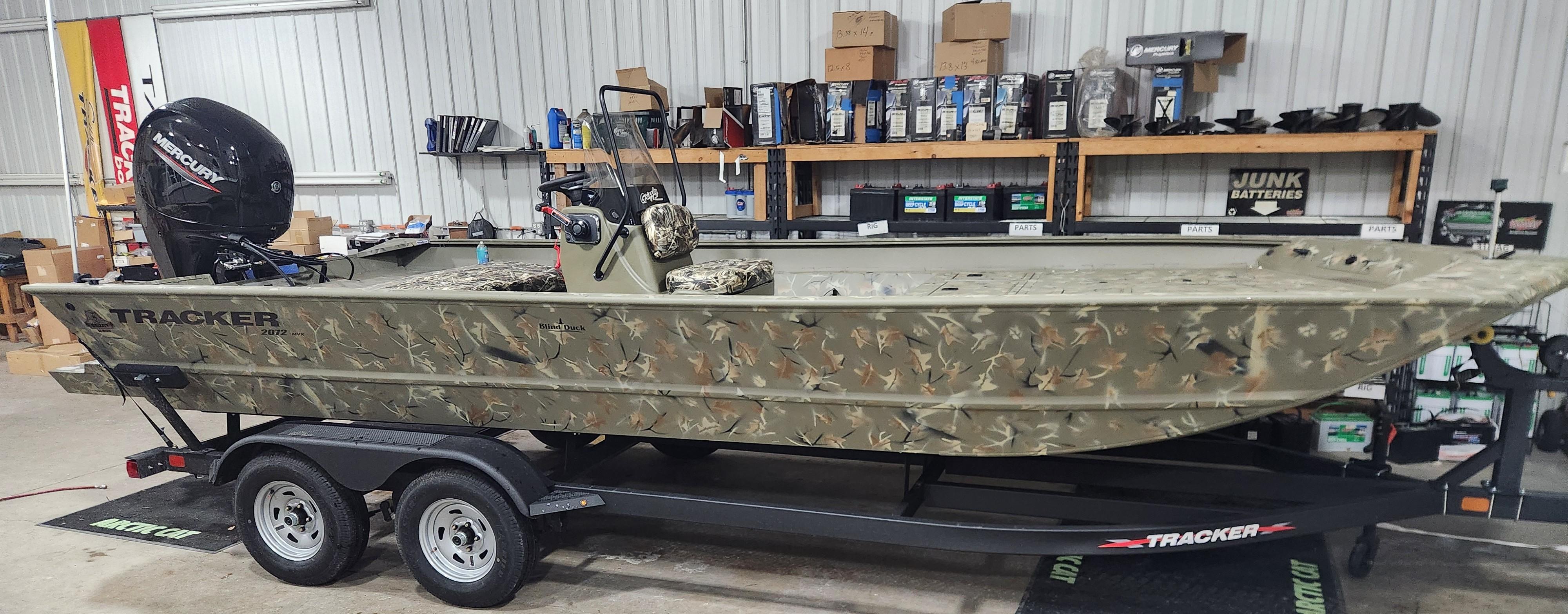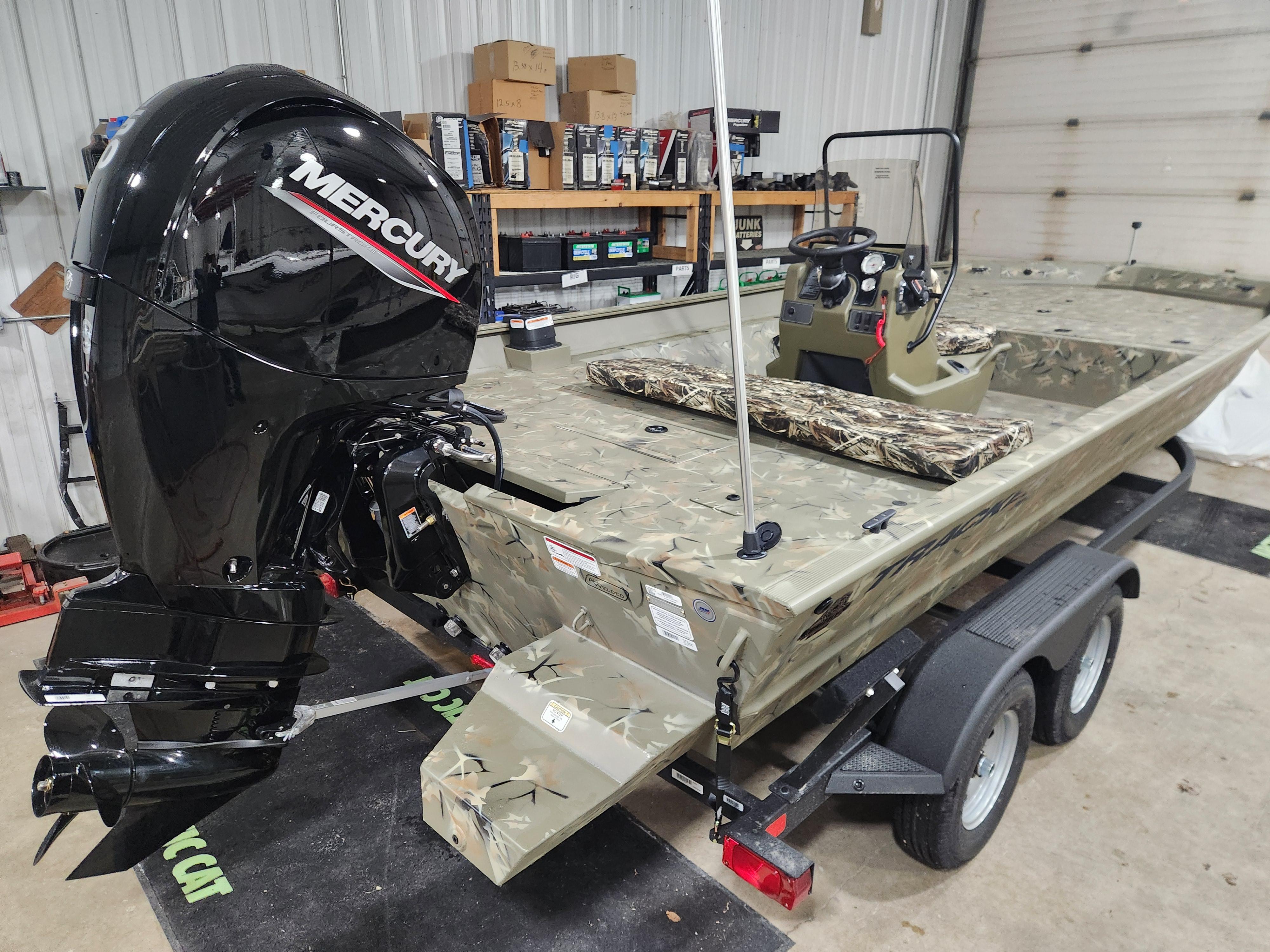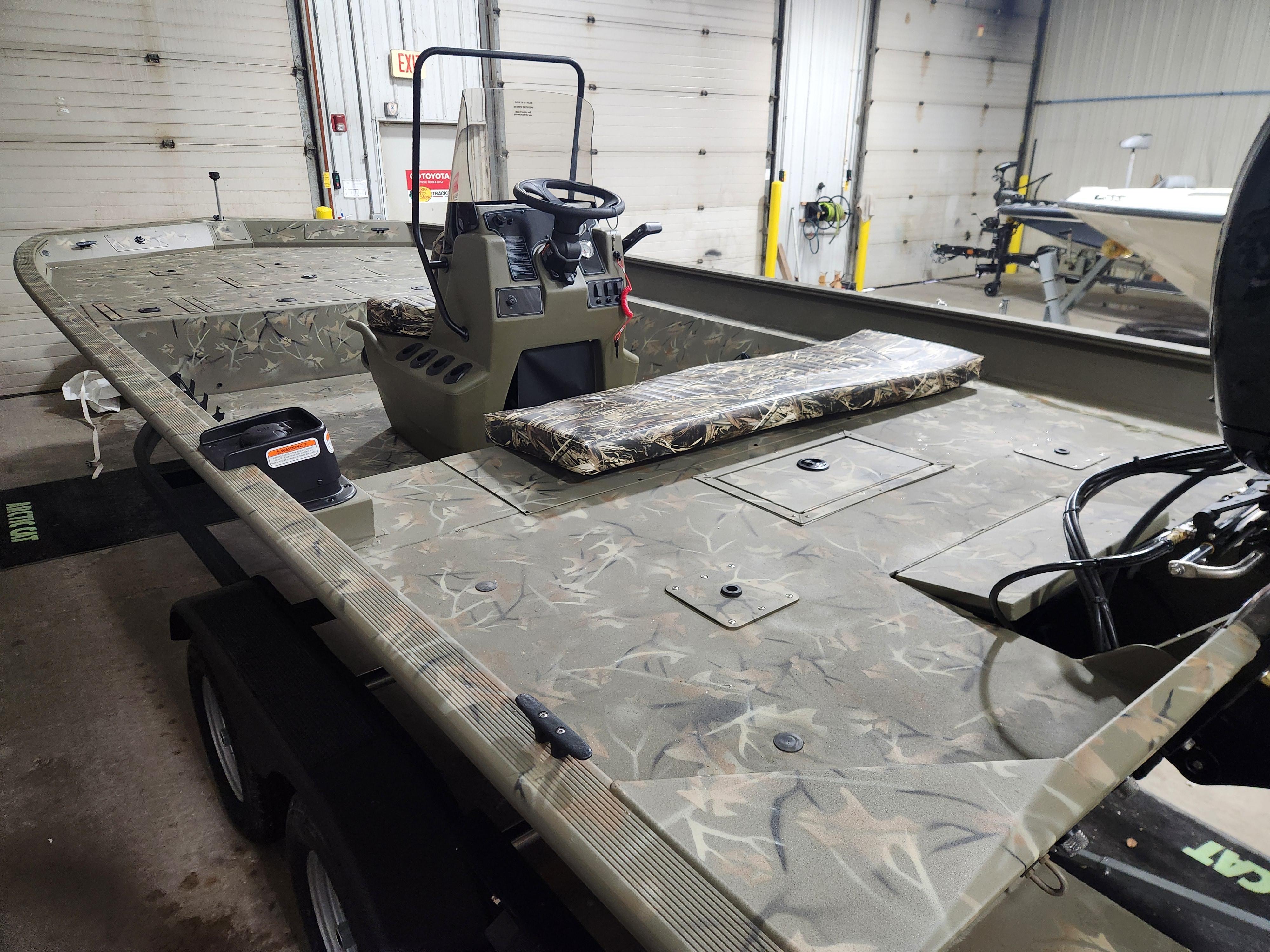 THIS PACKAGE PRICE INCLUDES A 150 4- STROKE WITH DUAL AXLE TRAILER WITH BRAKES. BOAT HAS A WOODLAND CAMO PATTERN.