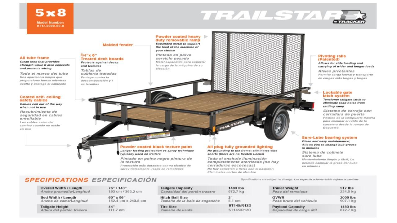 TRAILSTAR UTILITY TRAILER - SIZE 5 X 8