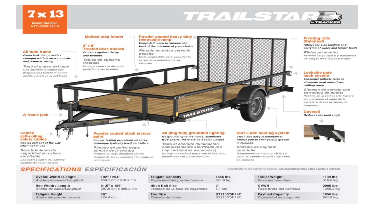 TRACKER - TRAILSTAR UTILITY TRAILER 7 X 13
