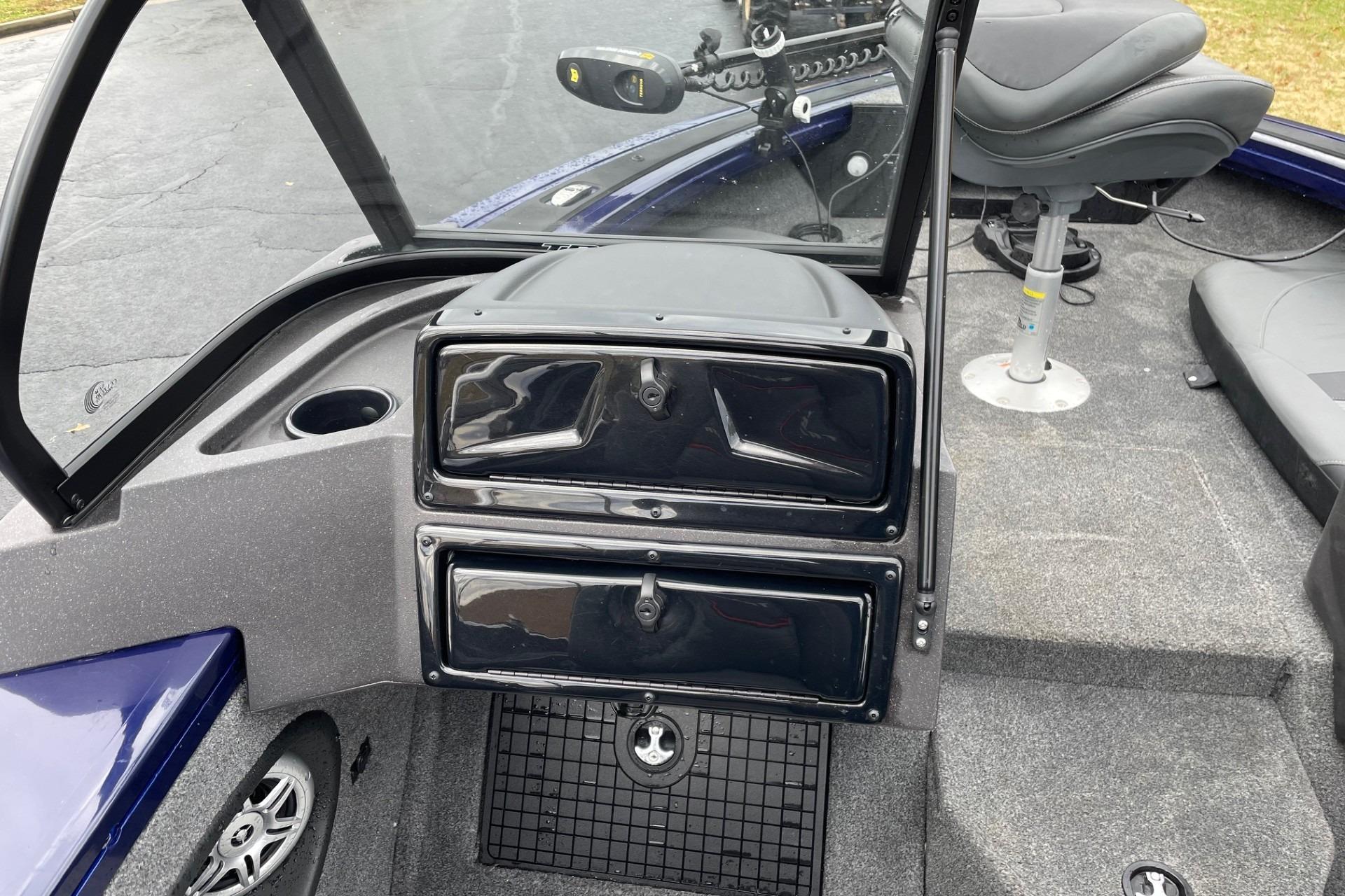 • In-floor center trolling battery storage compartment for up to 3 batteries