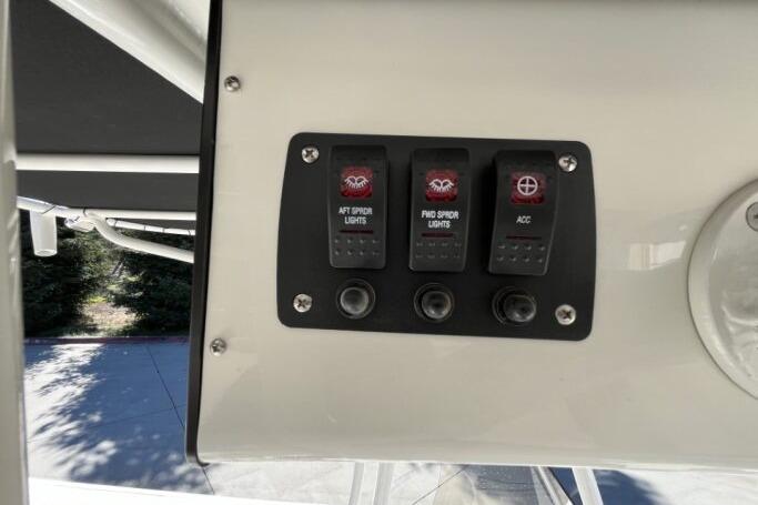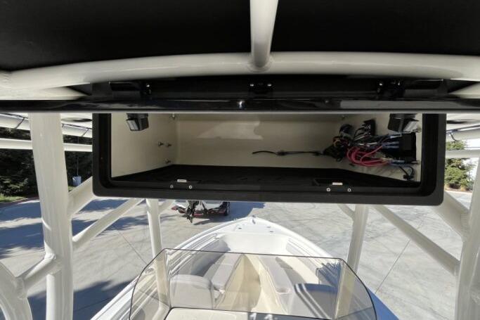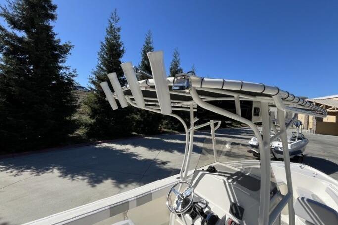 • Outrigger-ready canvas T-top w/4 rod holders, electronics box w/mounting plates for antenna & spreader lights