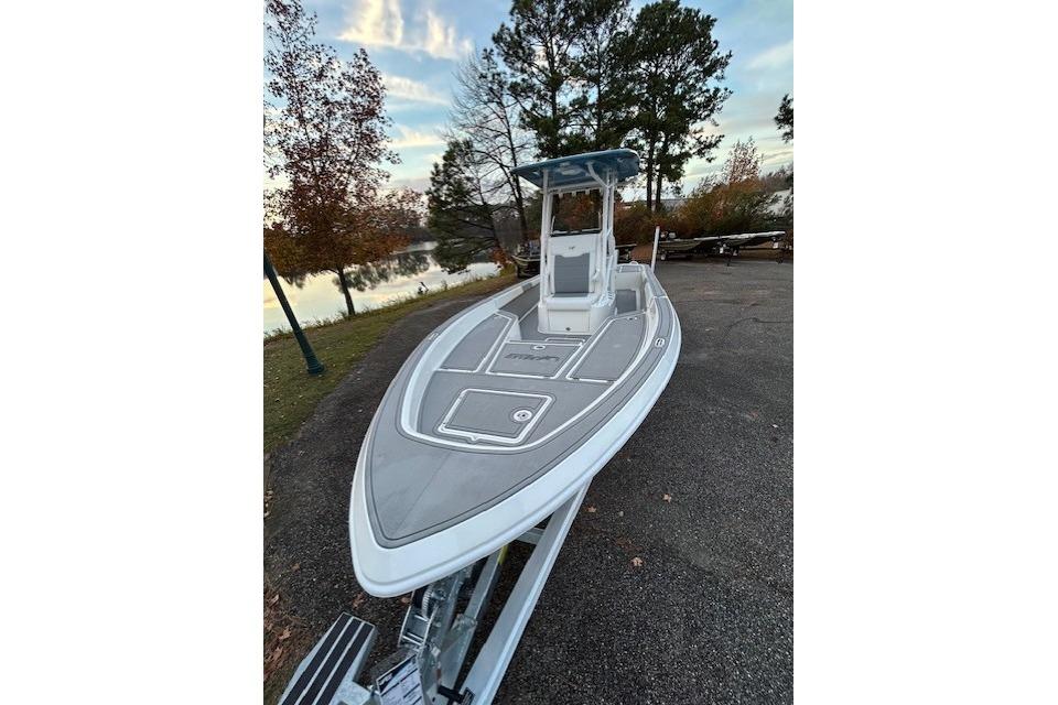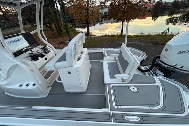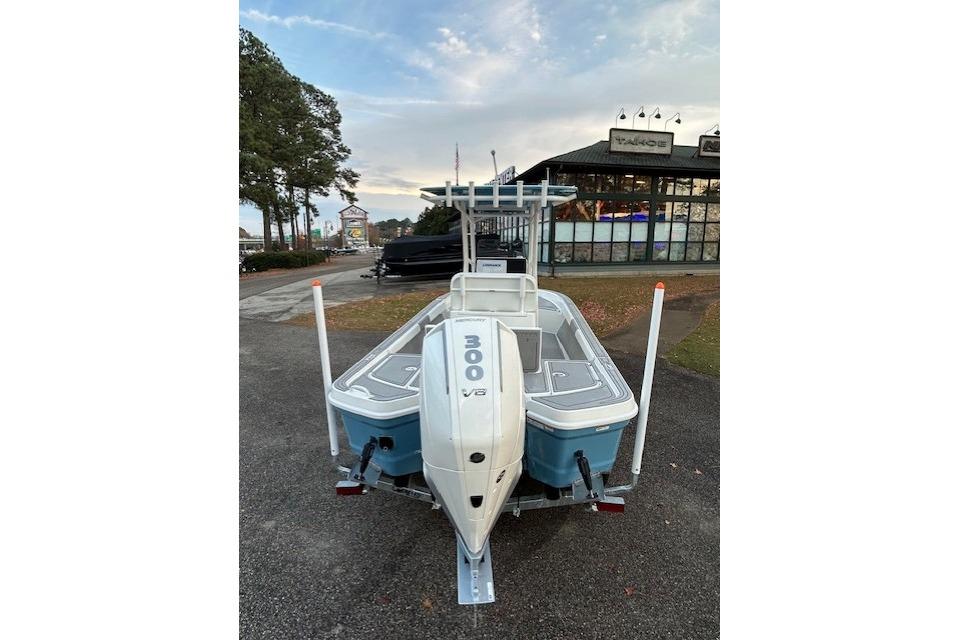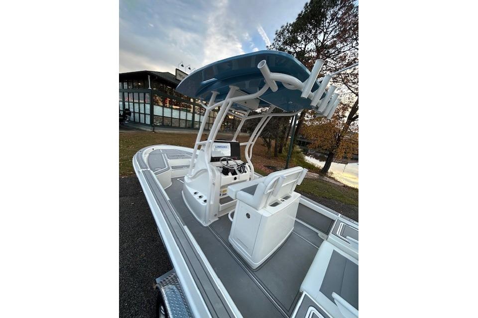 Auto Trim Tabs Color Matched Hardtop Fiberglass Leaning Post Gulfstream Blue Full Deck Mat Kit Raw Water Wash Down Prewired for Trolling Motor Upgraded Steering Wheel 7" Sharktooth Digital Gauge