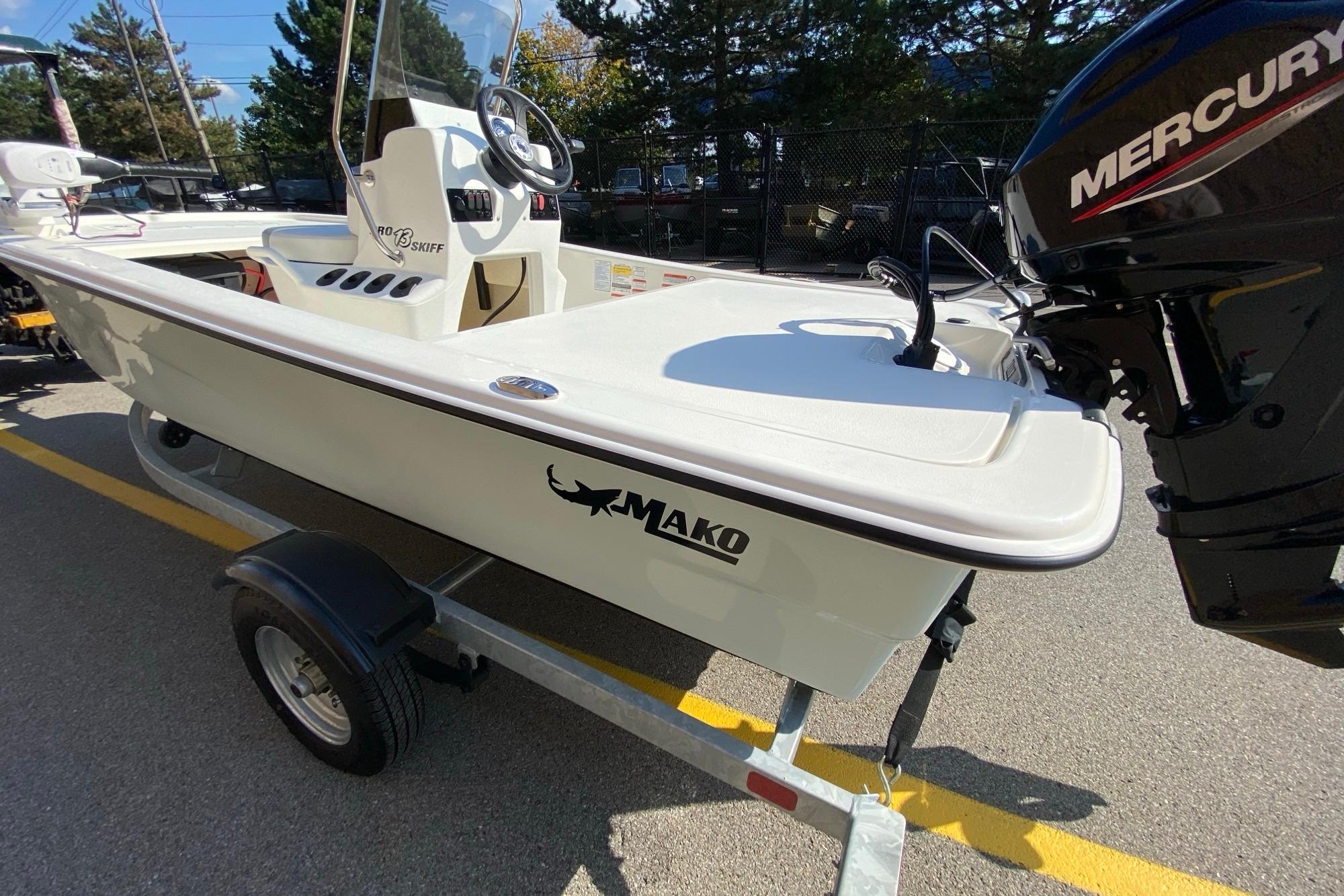 Get shallower and closer to the fish in the stealthy, compact MAKO Pro Skiff 13 CC. This skinny water predator delivers uncommon stability, responsiveness, and fishability for its size. The wide design from bow to stern ensures edge-to-edge stability and smooth sailing in chop and swells while offering increased storage options from the gasket bow box that features a tall lip to seal out the elements to the roomy undersea area beneath the helm bench.