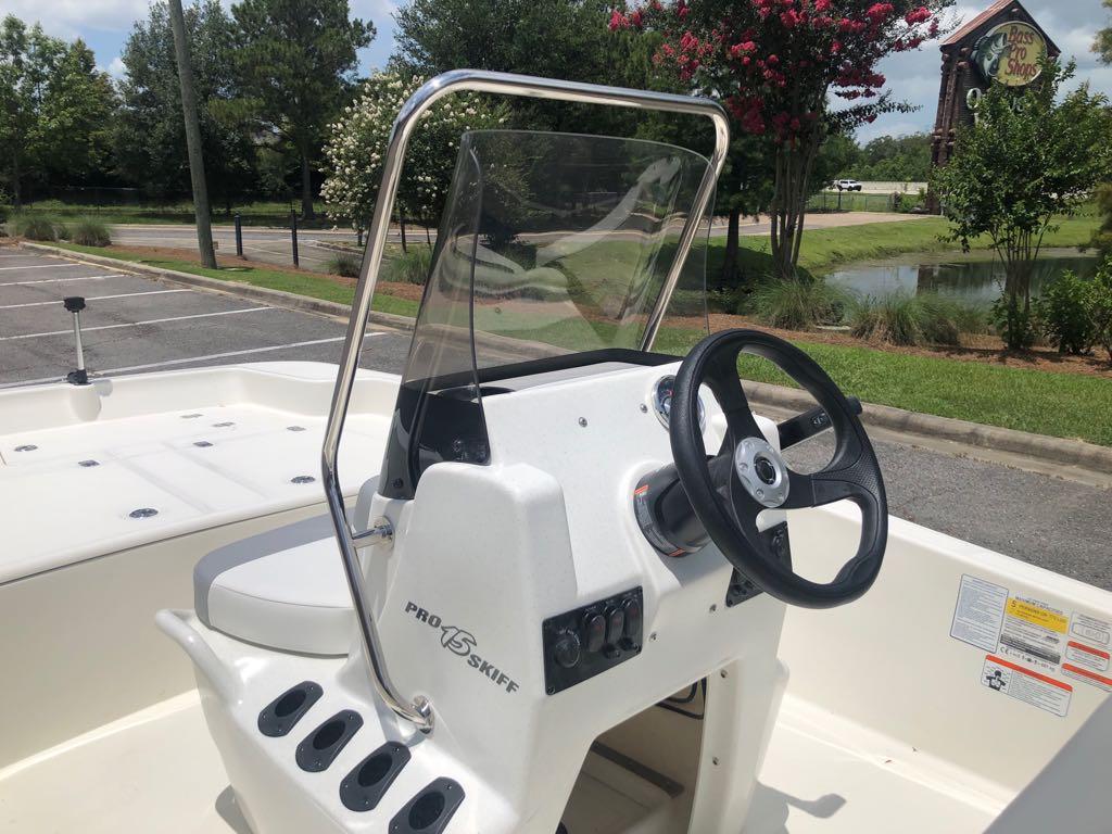 Stout construction, solid feel, and all-out fishability define the MAKO Pro Skiff 15 CC. The center console design offers maximum fishing space, and the purposefully designed hull was crafted for a smooth, dry ride, stability, and a shallow draft. Inside the Pro Skiff 15 CC is a helm seat with a 65-quart Orion® cooler underneath, a baitwell under the front seat, and rod holders and storage for a full day’s worth of gear.