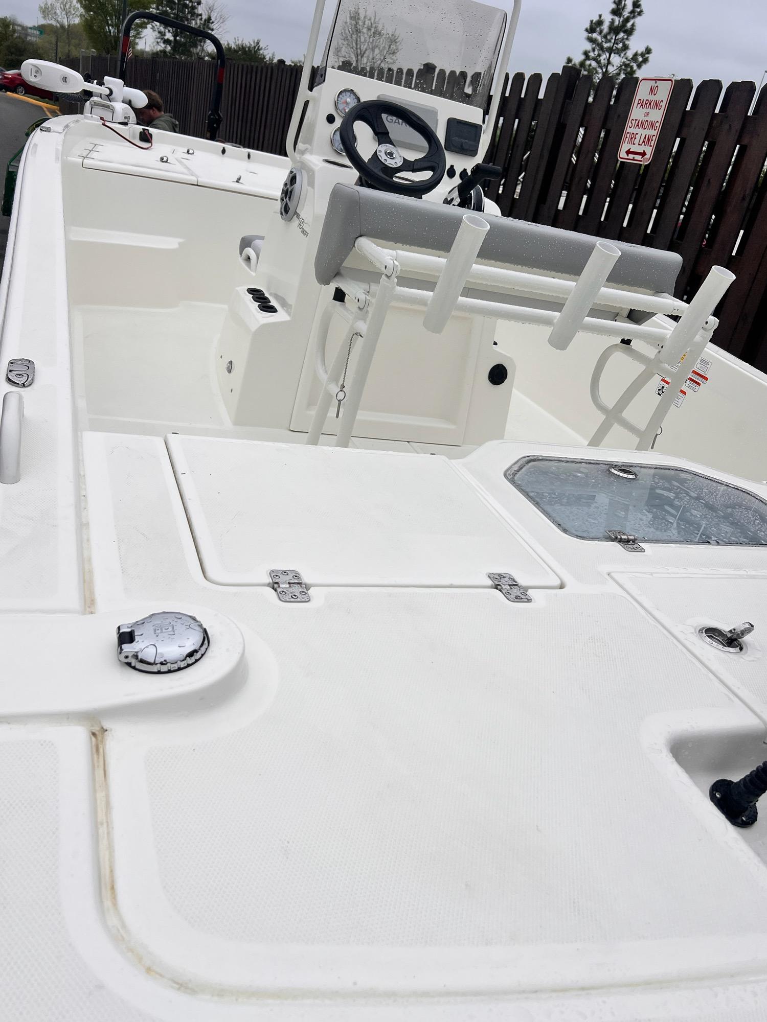 The biggest Pro Skiff in our lineup boasts a best-of-the best features set for all-out inshore and nearshore domination. A 150HP rating and 30-gallon fuel capacity give you extra range to go farther and hit more spots, while the finely tuned Advanced Invited V (AIV) hull delivers a smooth, dry ride and a superior draft. The massive front deck includes three lockable storage compartments equipped with gas-assist lift struts, stainless hardware, and a bow anchor locker/storage compartment.