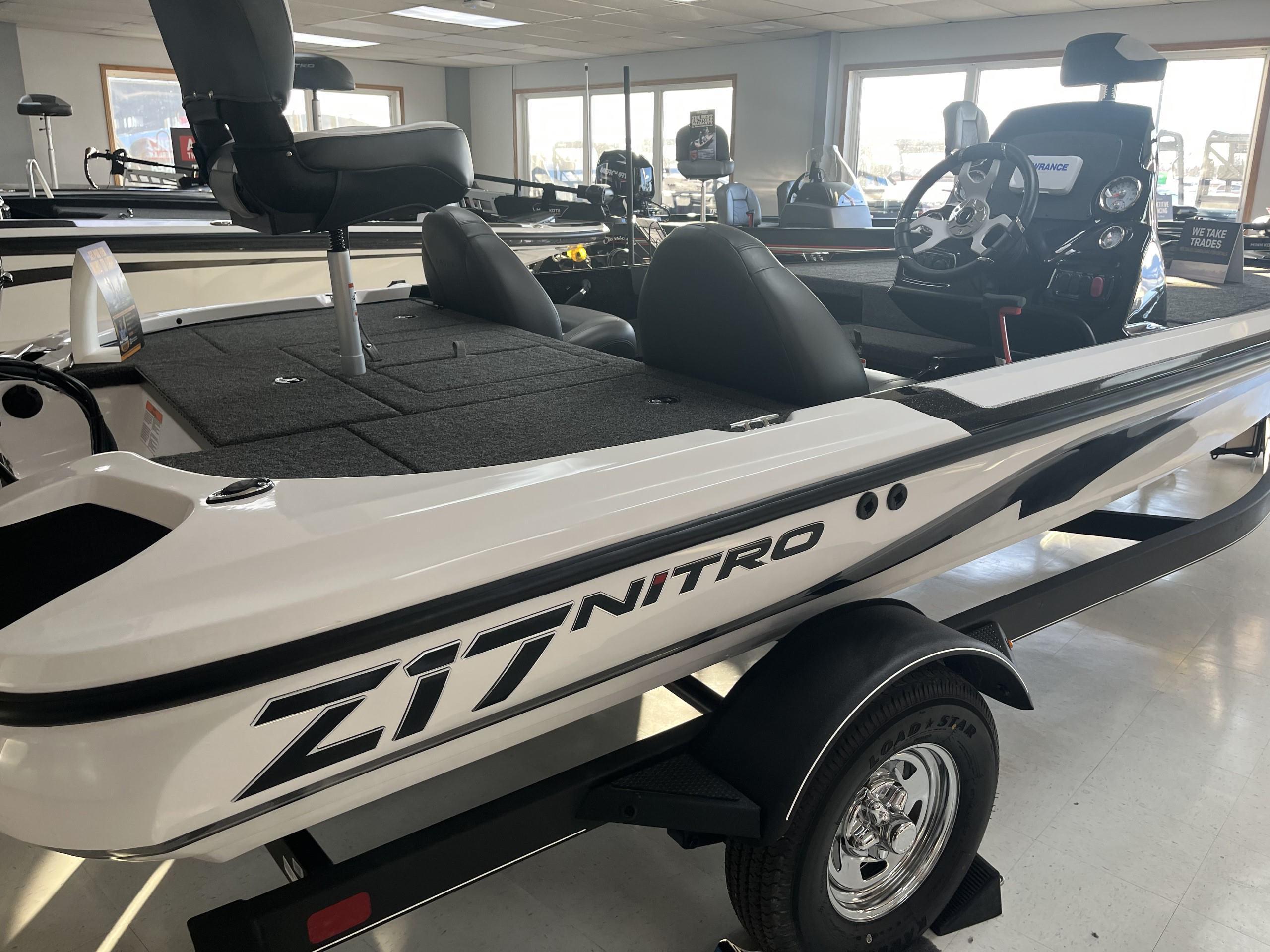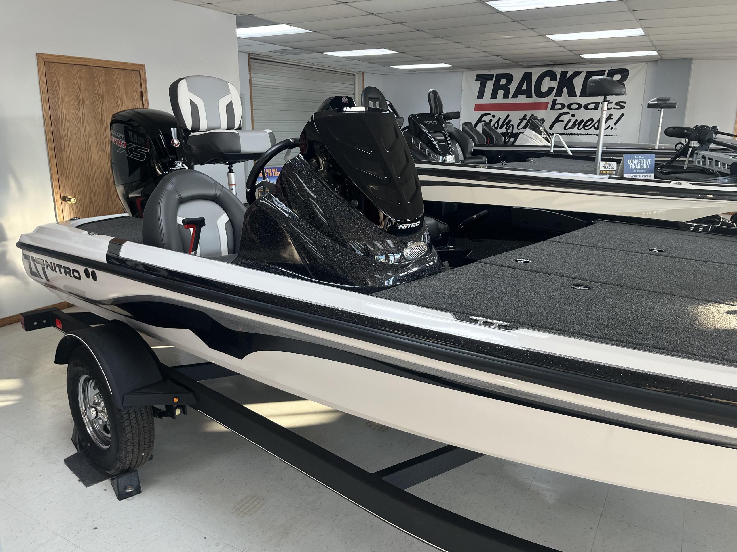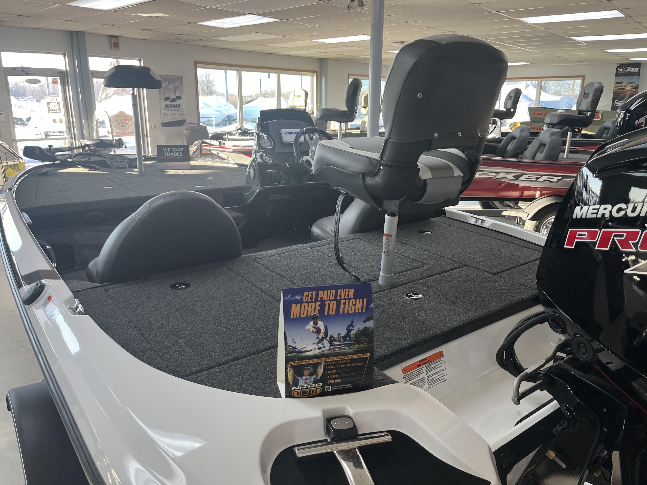 The NITRO® Z17 offers smooth, economical performance in a nimble size that's easy to tow, stow, and own. Reliable power from a FourStroke Mercury® outboard stands by to ramp up the fun with the jab of the throttle, while the NITRO® NVT™ hull offers quick planing and acceleration with on-rails handling at speed. The wide beam offers room for multiple anglers, stability in all conditions, and a world of storage beneath the decks. Lockable rod lockers carry sticks up to 7'6", while dedicated tackle stows in the rear deck keep boxes organized, dry, and readily accessible. The helm features a standard Lowrance® fishfinder, a full gauge set, and reliable switching for maximum convenience. Underneath the Z17 is a custom-fitted trailer made just for the hull it's carrying that promises years of smooth and hassle-free trailering. The Z17 is the perfect value- and feature-packed package that won't break the bank, but help you put checks in it.