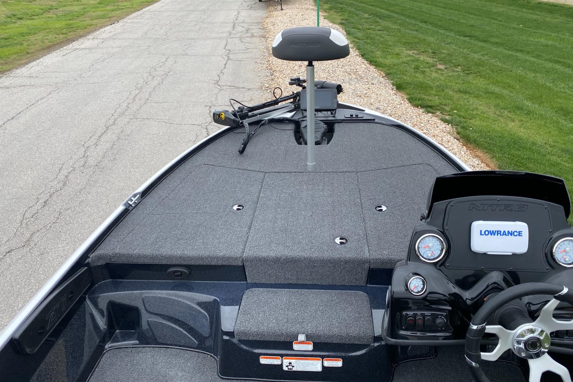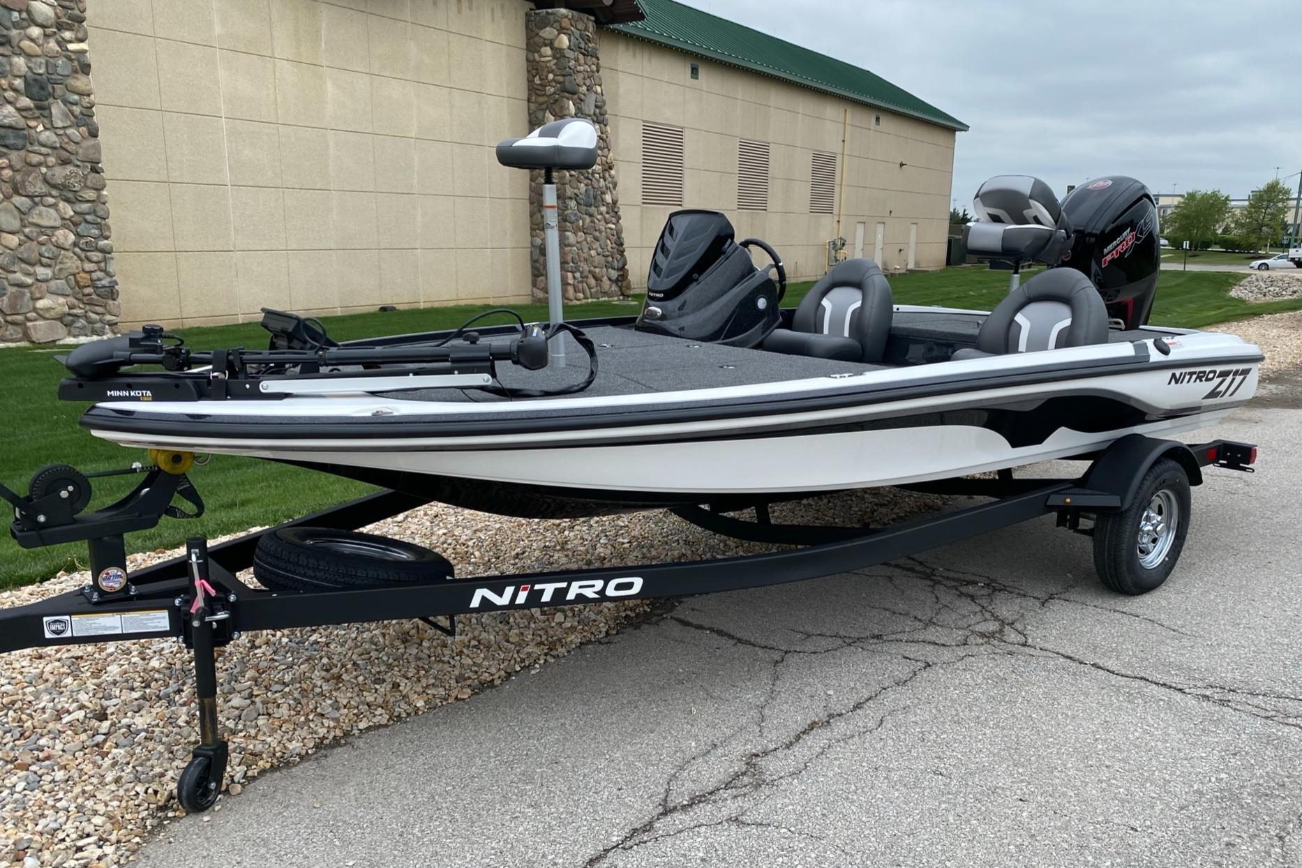 The NITRO® Z17 offers smooth, economical performance in a nimble size that's easy to tow, stow, and own. Reliable power from a FourStroke Mercury® outboard stands by to ramp up the fun with the jab of the throttle, while the NITRO® NVT™ hull offers quick planing and acceleration with on-rails handling at speed. The wide beam offers room for multiple anglers, stability in all conditions, and a world of storage beneath the decks. Lockable rod lockers carry sticks up to 7'6", while dedicated tackle stows in the rear deck keep boxes organized, dry, and readily accessible. The helm features a standard Lowrance® fishfinder, a full gauge set, and reliable switching for maximum convenience. Underneath the Z17 is a custom-fitted trailer made just for the hull it's carrying that promises years of smooth and hassle-free trailering. The Z17 is the perfect value- and feature-packed package that won't break the bank, but help you put checks in it.