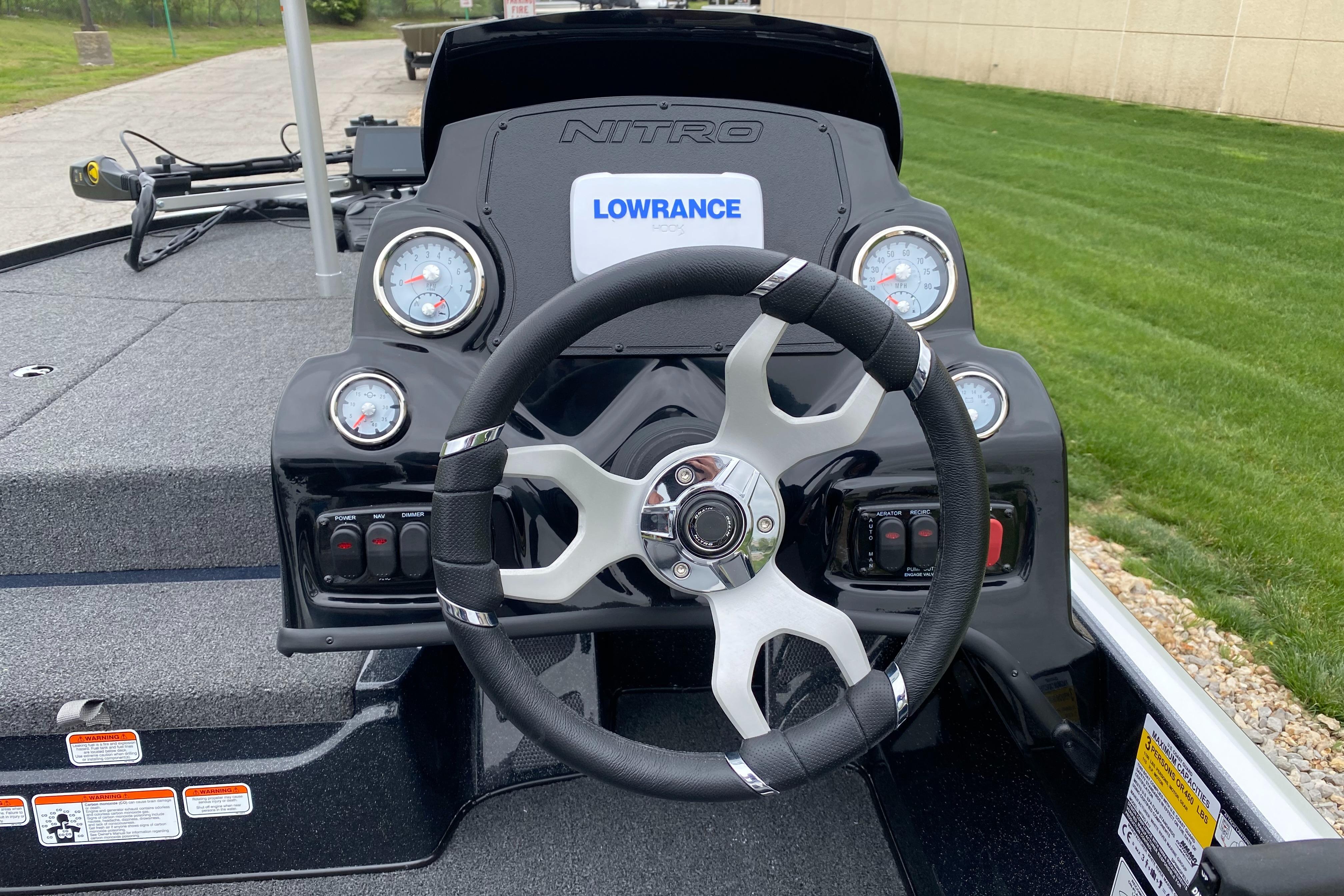 • Bow panel w/trolling motor receptacle, anchor/light switch, trim switch & capability to flush mount 9" (22.86 cm) fishfinder