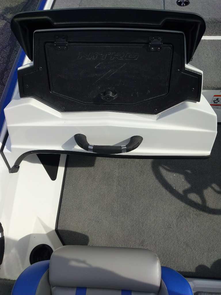 • Step to bow deck w/62-qt. (58.67 L) insulated cooler & removable trash receptacle