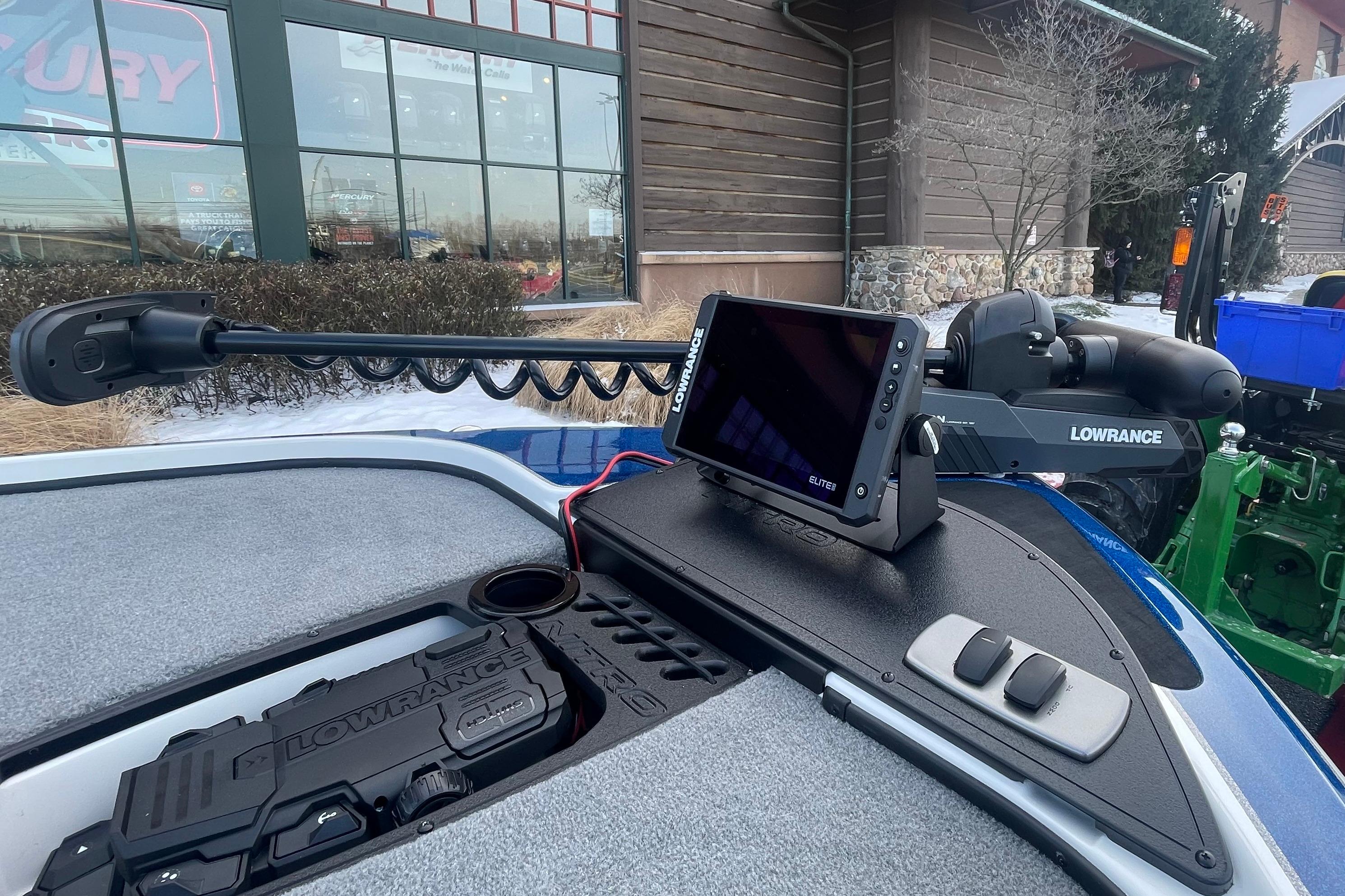 • Angled bow panel w/trolling motor receptacle, anchor/light switch, trim switch & capability to flush mount most 12" (30.5 cm) fishfinders