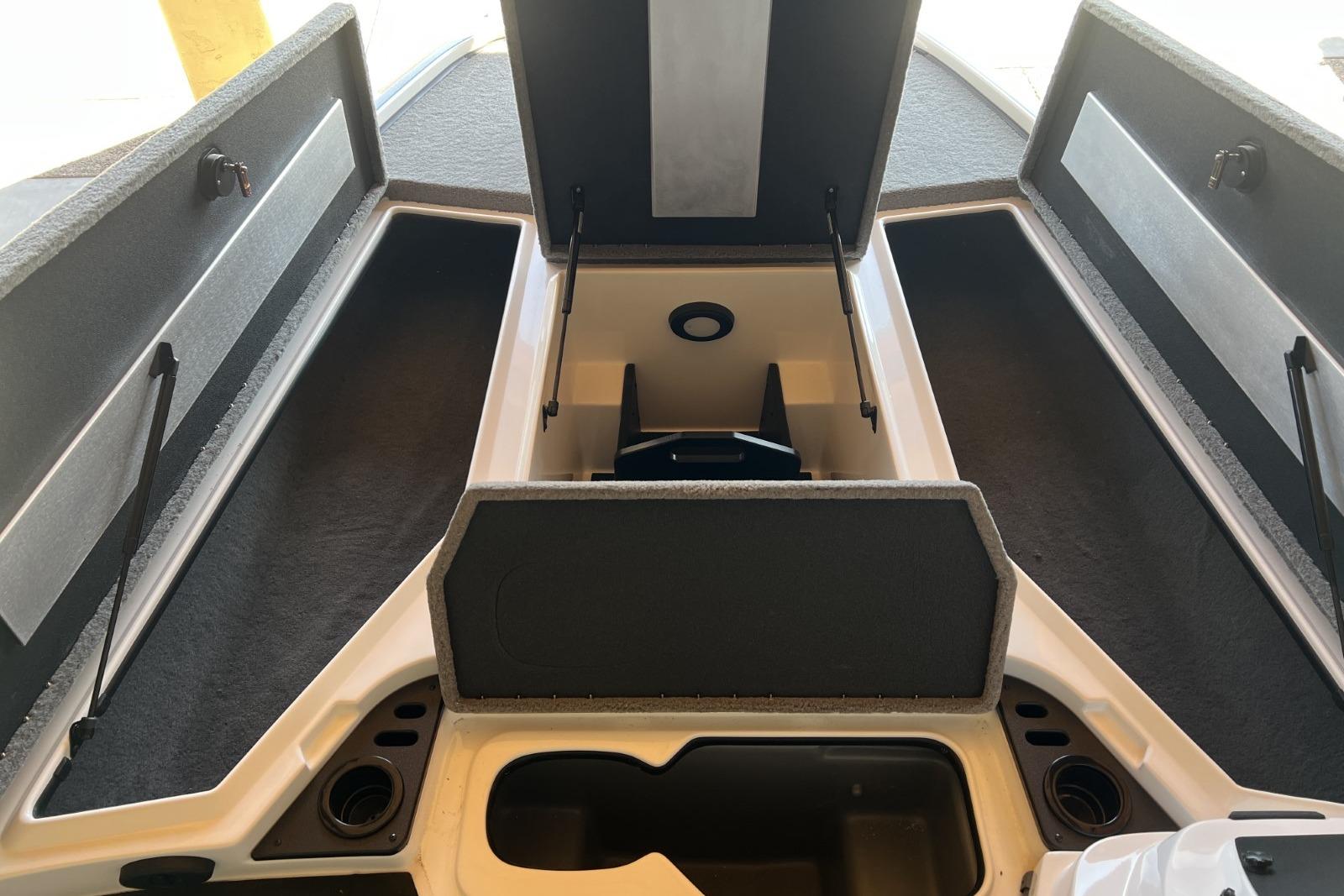 • Step to bow deck w/62-qt. (58.67 L) insulated cooler & removable trash receptacle