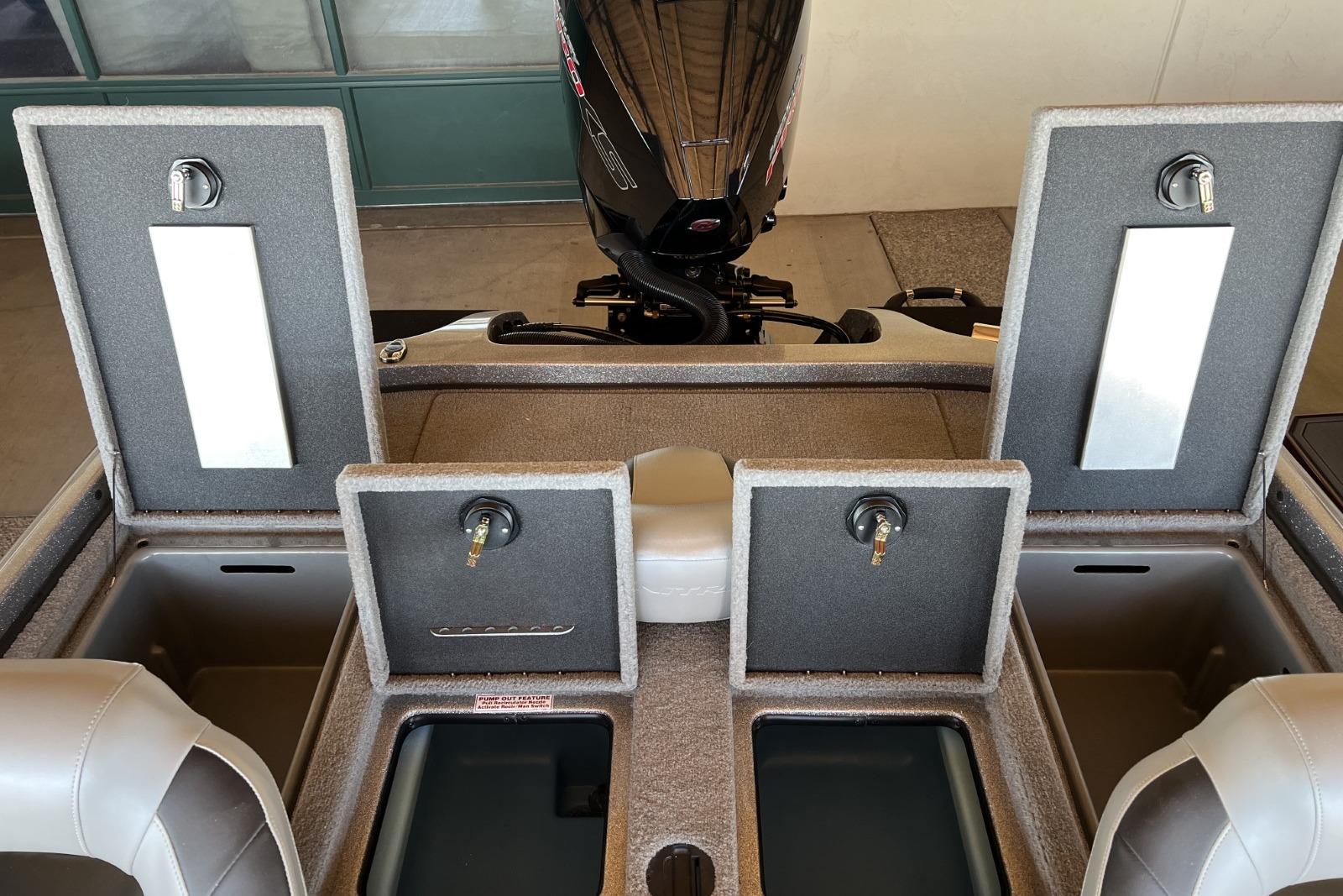 An all-new 41-gallon livewell keeps your catchy frisky thanks to anti-slosh baffles and aerated recirculating functionality. The rear storage boxes are removable, so you can take your tackle inside for organizing and reloading, and the battery box is gel coated for easy cleanup and a clean finish.