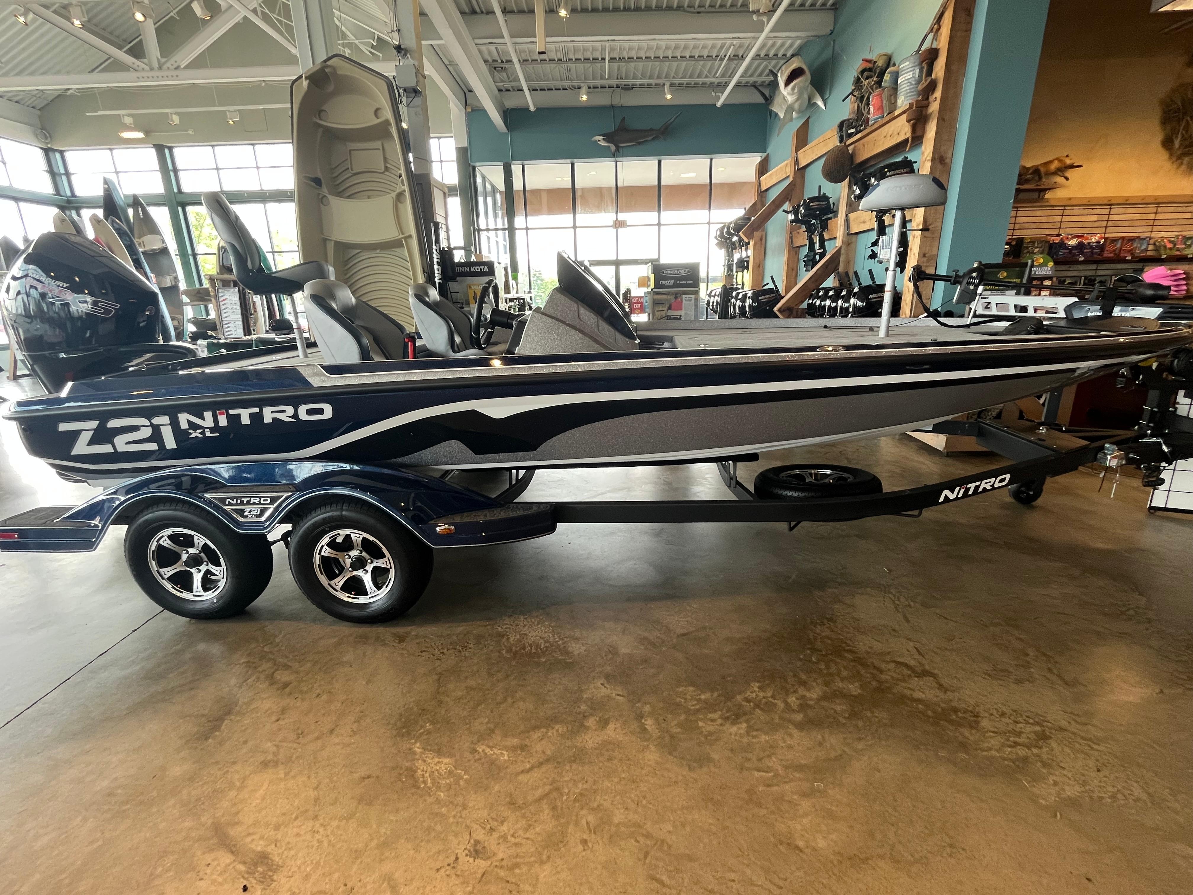 Sports car performance, sedan comfort, SUV utility. The NITRO® Z21 XL combines these and more into the ultimate no-holds-barred bassin’ rig. In the 21-foot class, the Z21 XL stands alone in performance-driven fishability with a colossal casting deck, pro-driven layout, and all the fishing features demanded by the top pros. Up front, an extra-wide bow gives you more stability on the trolling motor, and you’ll be at your best all day thanks to the padded front deck. The colossal center stows carry both rods and tackle in organized security and are accessible at a moment’s notice. All-new slam latches mean no more twist latches to trip over when left undone. Underfoot in the cockpit is an EVA foam pad for fast-drying non-skid grip, while the helm is an angler’s dream, carrying electronics up to 16”, a full gauge set, and the NITRO® Z-TOUCH™ touchscreen control center. Z-CORE™ suspension seating saves your back in chop and keeps you centered in high-performance turns thanks to the side-bolstered design. The running surface of the Z21 XL features NVT™ technology for instant planing, nimble handling, and superior speeds with a full load. Our engineers focused on real-world tournament conditions to deliver a better experience with a full load, fishing partner, full livewells, and a full complement of gear to give you the pro-grade experience you’ve been looking for.