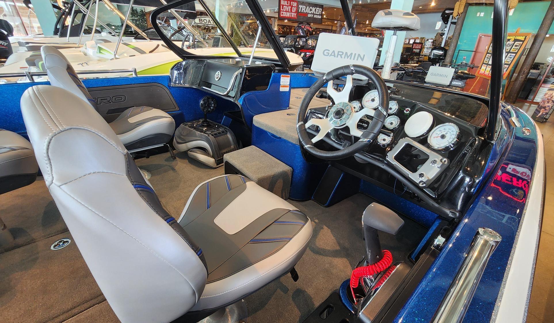 225hp ProXS DTS. Lithium Battery System. Garmin Force Kraken. Ski Pylon. Oxygen Generators. Auto Bilge Pump. Anti-Fatigue Mats. 6" jack plate. Mooring Cover. Lenco Trim Tabs. Dual Trim Levers.