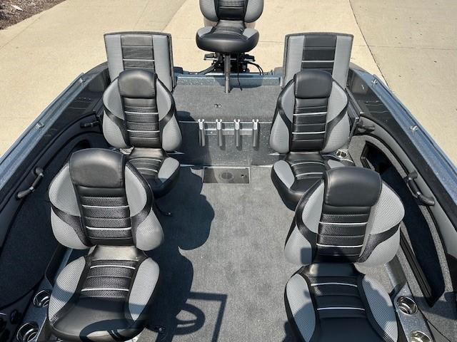 • Custom-fitted premium marine upholstery - (4) Soft Ride Seating (SRS) fold-downs w/ (2) bell pedestal with adjustable slide and (2) 15" non-adjustable posts