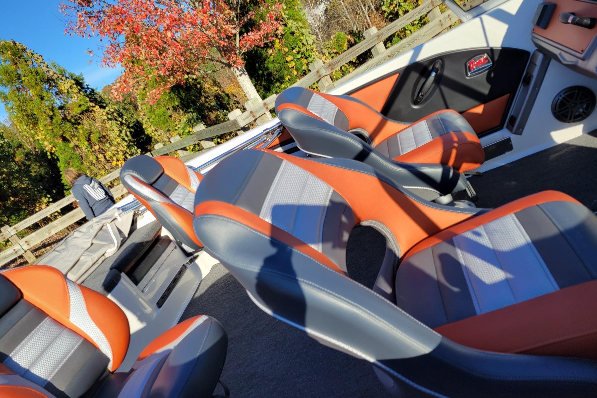 • Custom-fitted premium marine upholstery - (4) Soft Ride Seating (SRS) fold downs: (2) Bell Ped. w/ adjustable slide, (2) 15" Non-Adjustable Posts