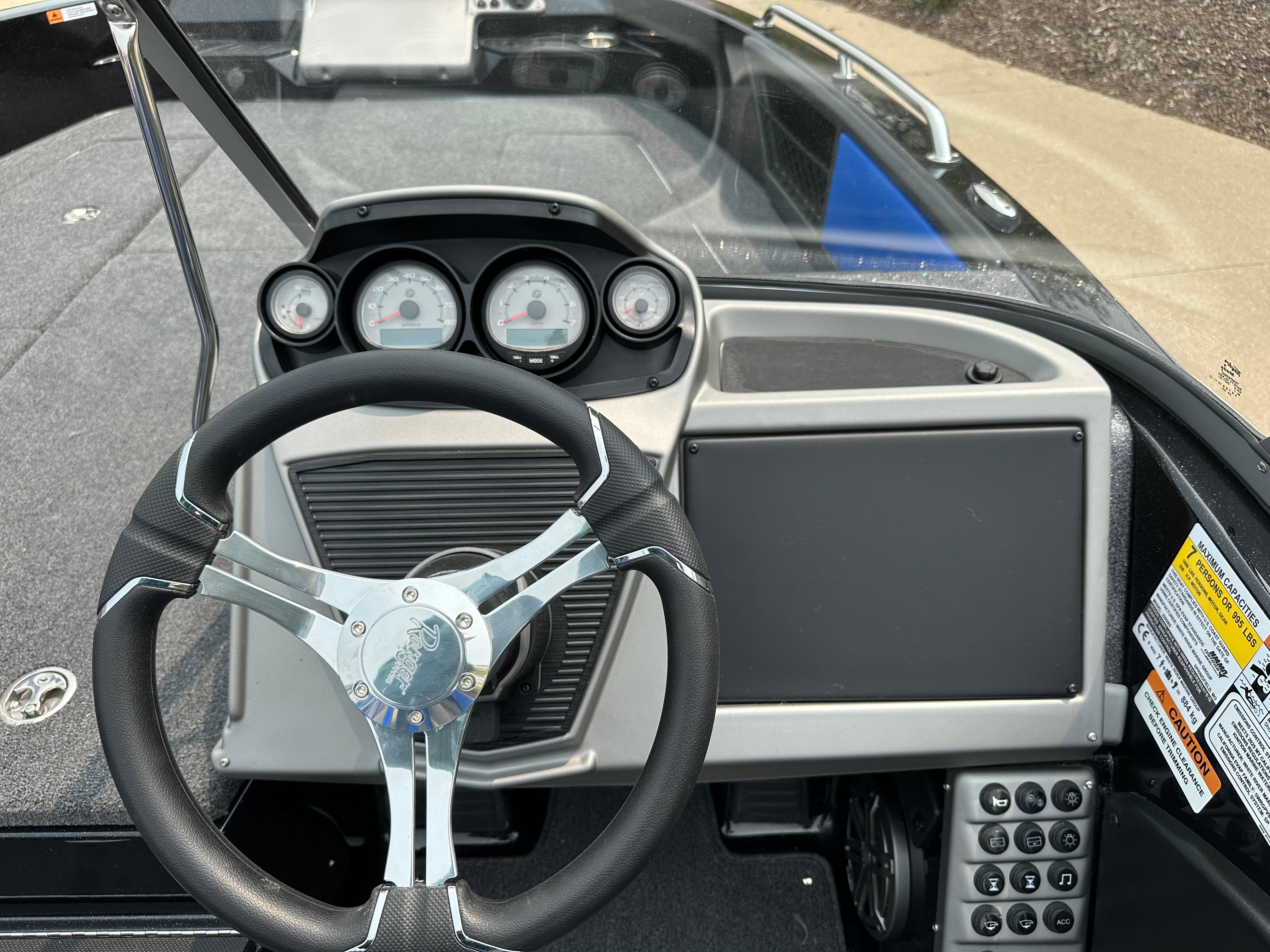 • Console panel w/ switches & gauges (speed, tach, fuel, trim, water pressure)