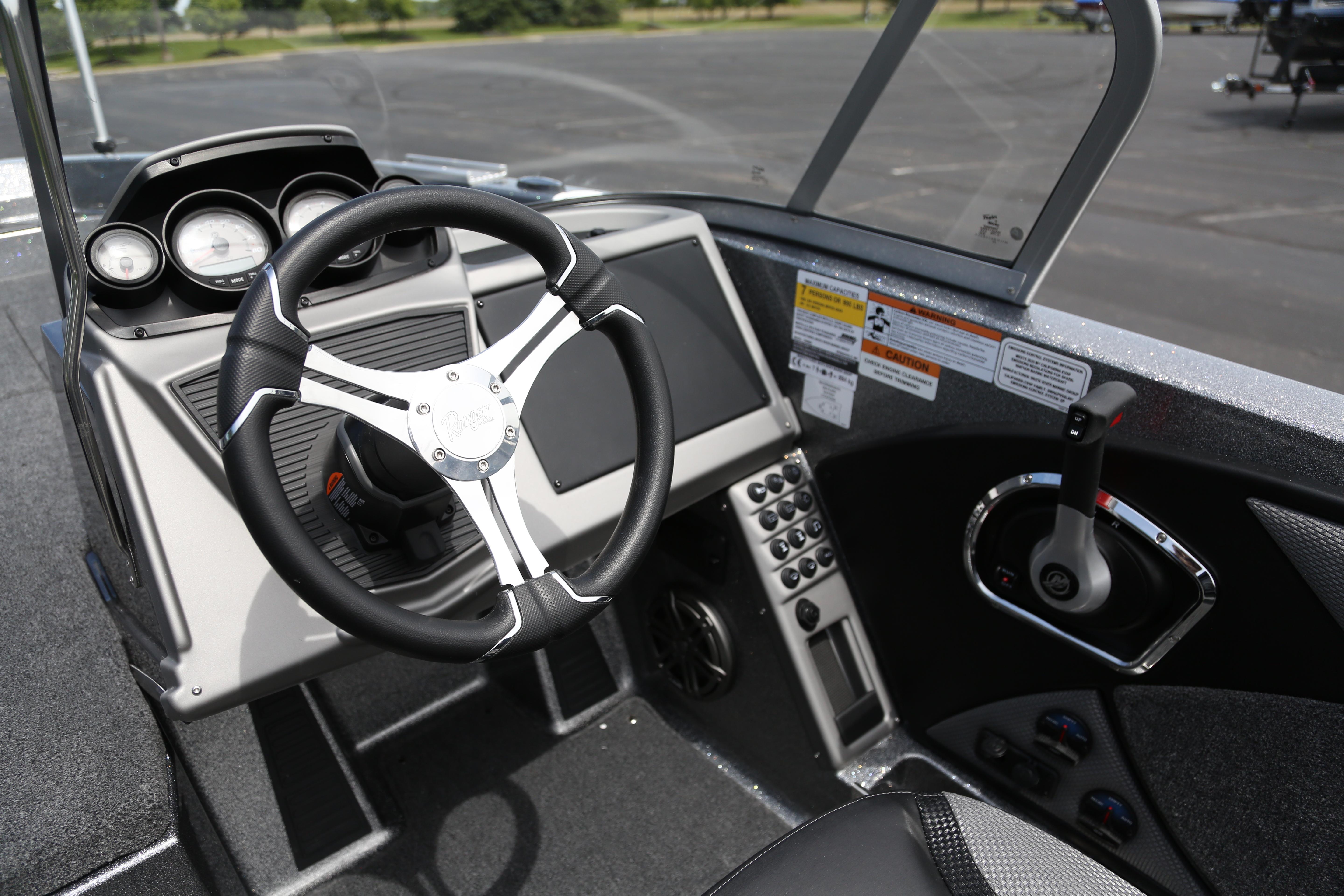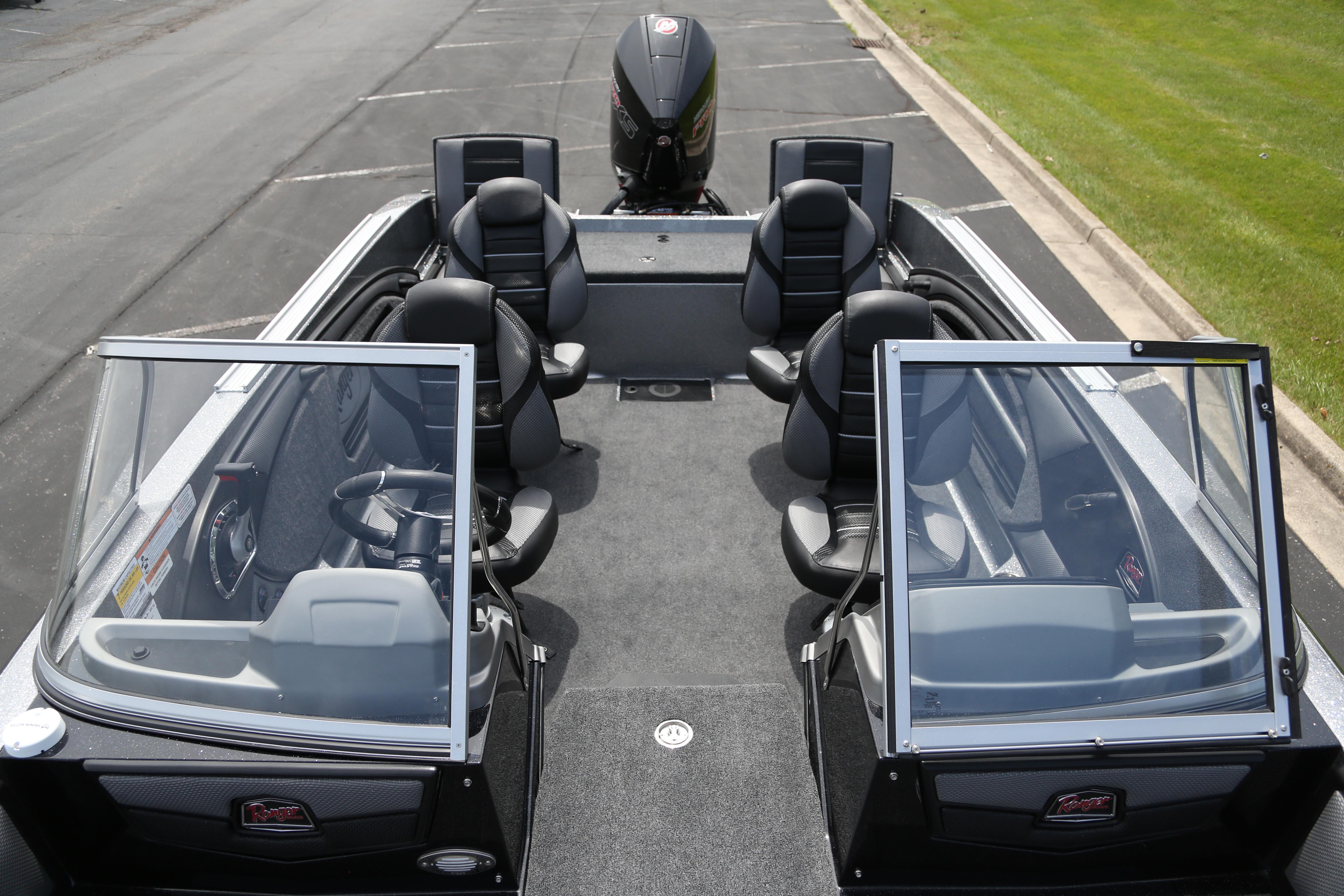 Big families who like big times on the water will find much to love about the 2080MS Angler. And with a new bow panel that offers greater convenience and functionality, there’s even more to love. This crossover carries its own on derby day as well as laid-back days off. A huge front casting deck, ample storage, a front baitwell and aft livewell, Lowrance® electronics and a Minn Kota® trolling motor make the 2080MS a formidable fishing machine. The 2080MS skews toward fishing pursuits with a wide-open cockpit that is perfect for trolling setups and clever in-gunnel and under-seat storages that keep rods and tackle handy. When it’s time to relax, the same open layout shines with six premium hand-crafted seats, LED interior lighting and two coolers. A stern rope stow, stainless steel reboarding ladder and optional ski tow pylon make watersports a breeze and multiple USB charging ports ensure you’re fully charged at all times. No matter what’s on the agenda, the 2080MS is built with legendary Ranger upright, level flotation standards and our unmistakable One-Piece Feel Interloc Construction® standards. These deliver a greater level of safety and peace of mind built right in to make the most of your time on the water. The 2080MS Angler is total performance that’s exceeded only by versatility.