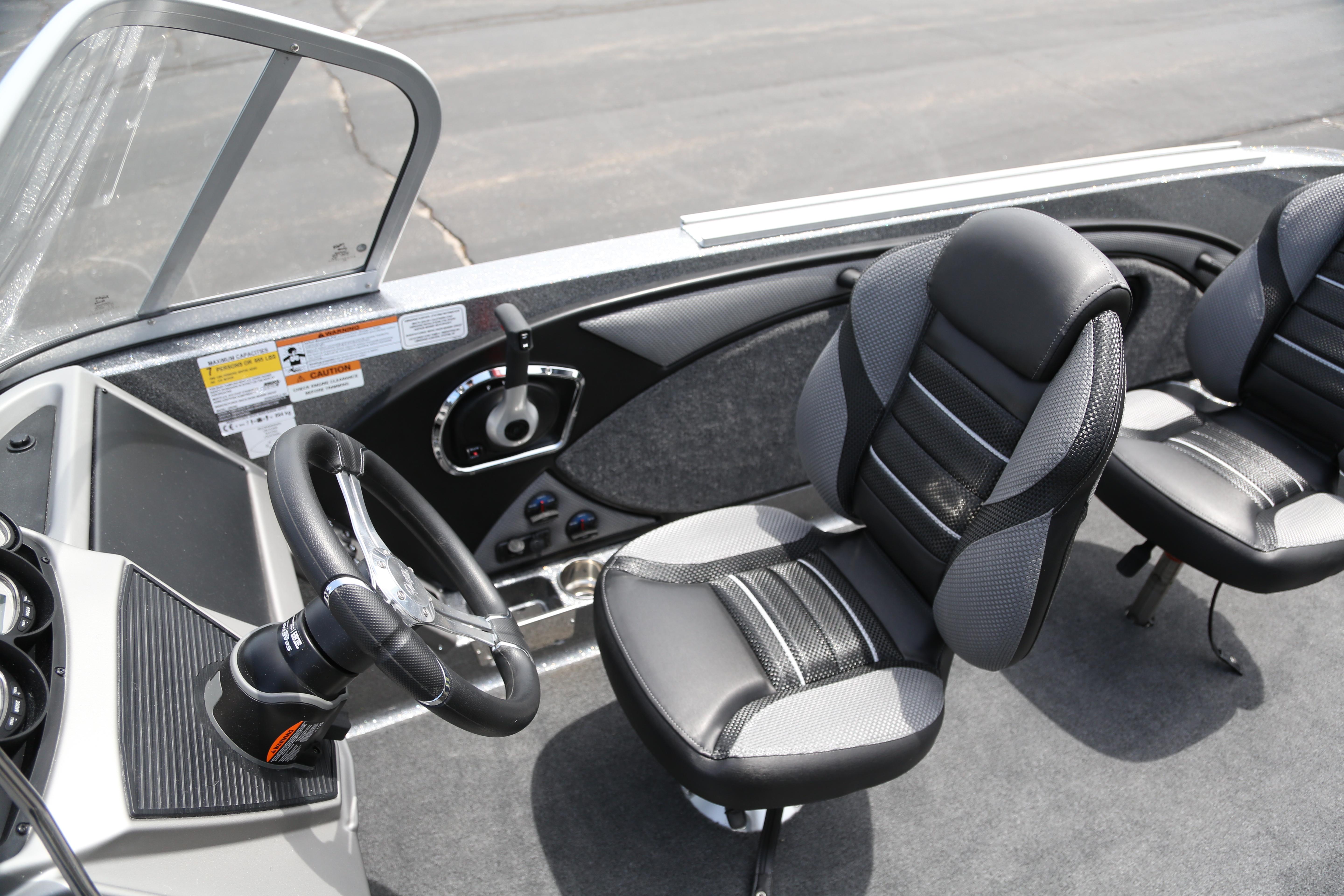 • Custom-fitted premium marine upholstery - (4) Soft Ride Seating (SRS) fold-downs w/ (2) bell pedestal with adjustable slide and (2) 15" non-adjustable posts