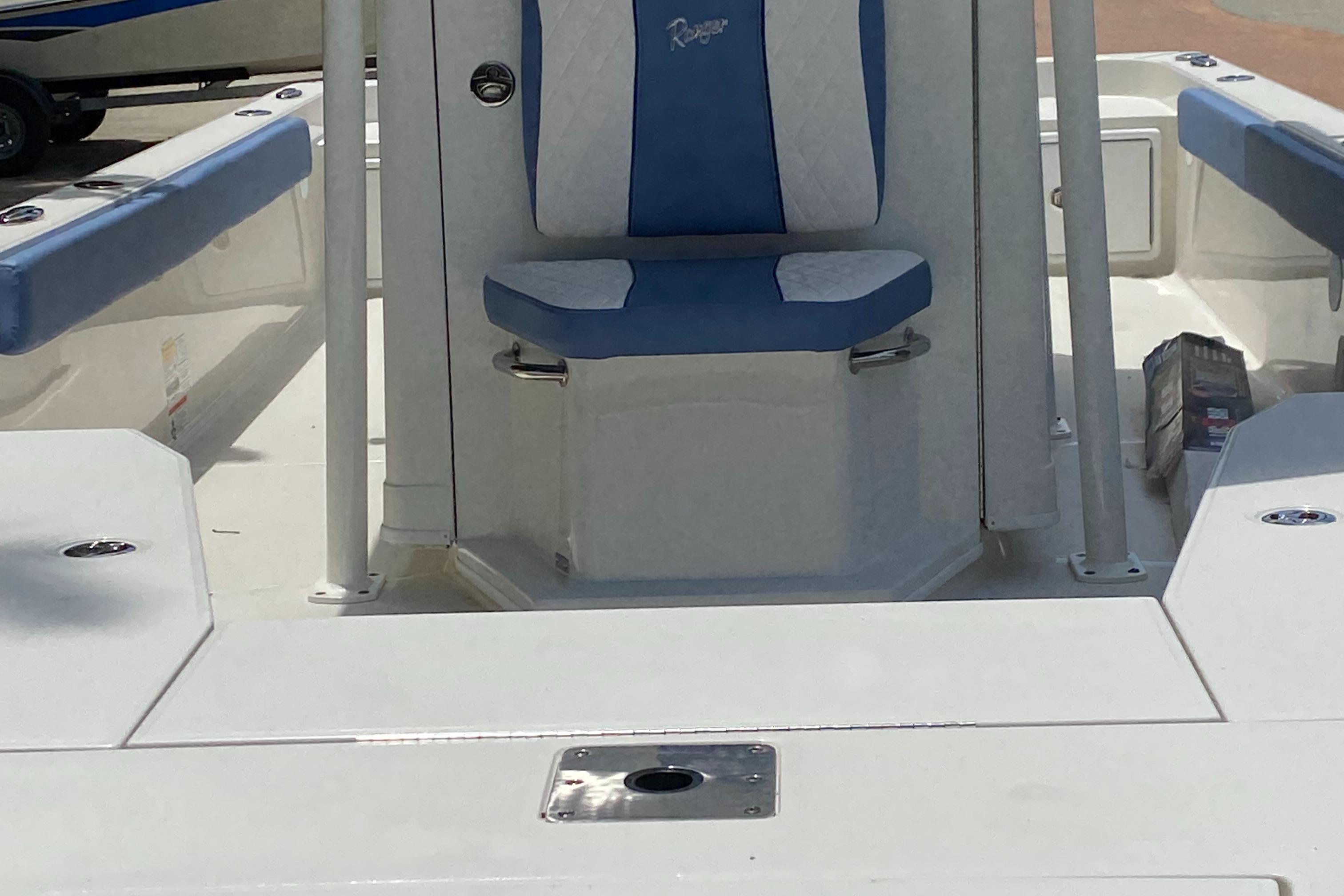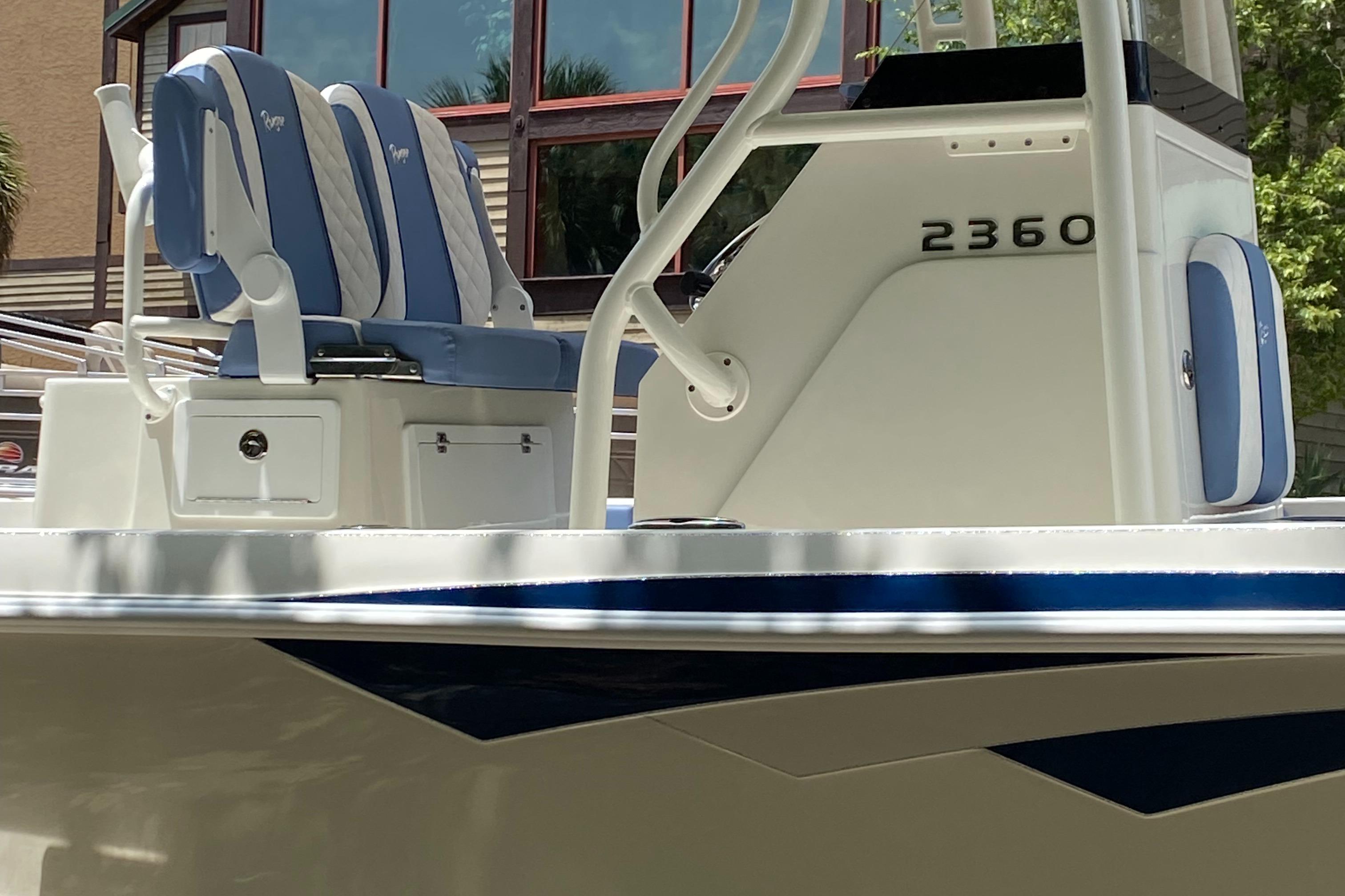 The Ranger® 2360 is designed for maximum confidence and comfort offshore, with stealth and a respectable draft for prowling the flats. At 23' 5" the 2360 carries a 300-horsepower rating and an expertly flared bow to smooth out rough seas. The angler-designed interior boasts a clutter-free layout and clever storage with plenty of room for stand-up fishing or tending to trolling lines. Conveniences are integrated from bow to stern from the rear fold-down jump seats, large center console that can comfortably house a portable toilet to the lower, easier-to-access front casting deck. Within the hull is a massive stringer system with solid, reinforced chines and a world of our signature foam flotation that deliver that famous one-piece feel, along with our patented, stronger-than-steel pultruded fiberglass material. The Ranger 2360 truly is the bay boat, evolved.