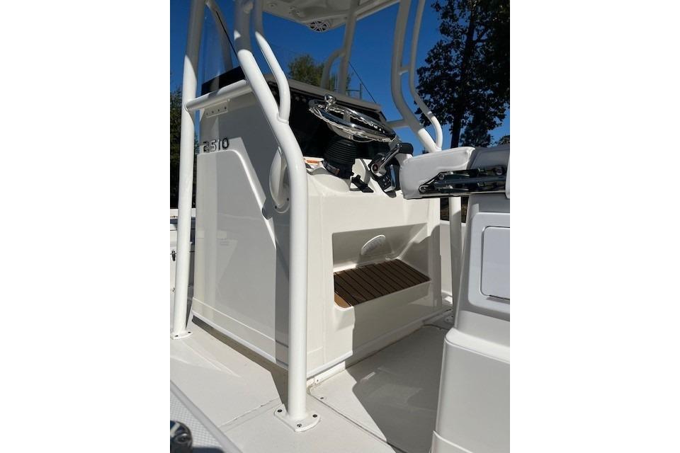 Whether you’re towing teasers over the big blue or taming hero snook in the backcountry, this is your go-to rig. Famous for its soft ride and recognizable Carolina flare, this platform isn’t just good looks. The 2510 comes standard with a stand-up 40-gallon livewell with 2,200 GPH aeration, a large storage console suitable for a Porta Potti, easy access to pumps, strainers and valves as well as all the comforts the family demands. A big fuel tank and 400-horse rating mean you can go farther, faster with economical performance. A wide-open layout hides storage everywhere, while delivering maximum stability and fishabilty. Standard with every 2510 is a dual-axle, aluminum-framed Ranger Trail® trailer that boasts sealed LED lights, four disc brakes, and a center swing jack for the utmost in security and storage options. When you’re ready to step up your game in a big bay boat, the Ranger 2510 will take you to the next level.
