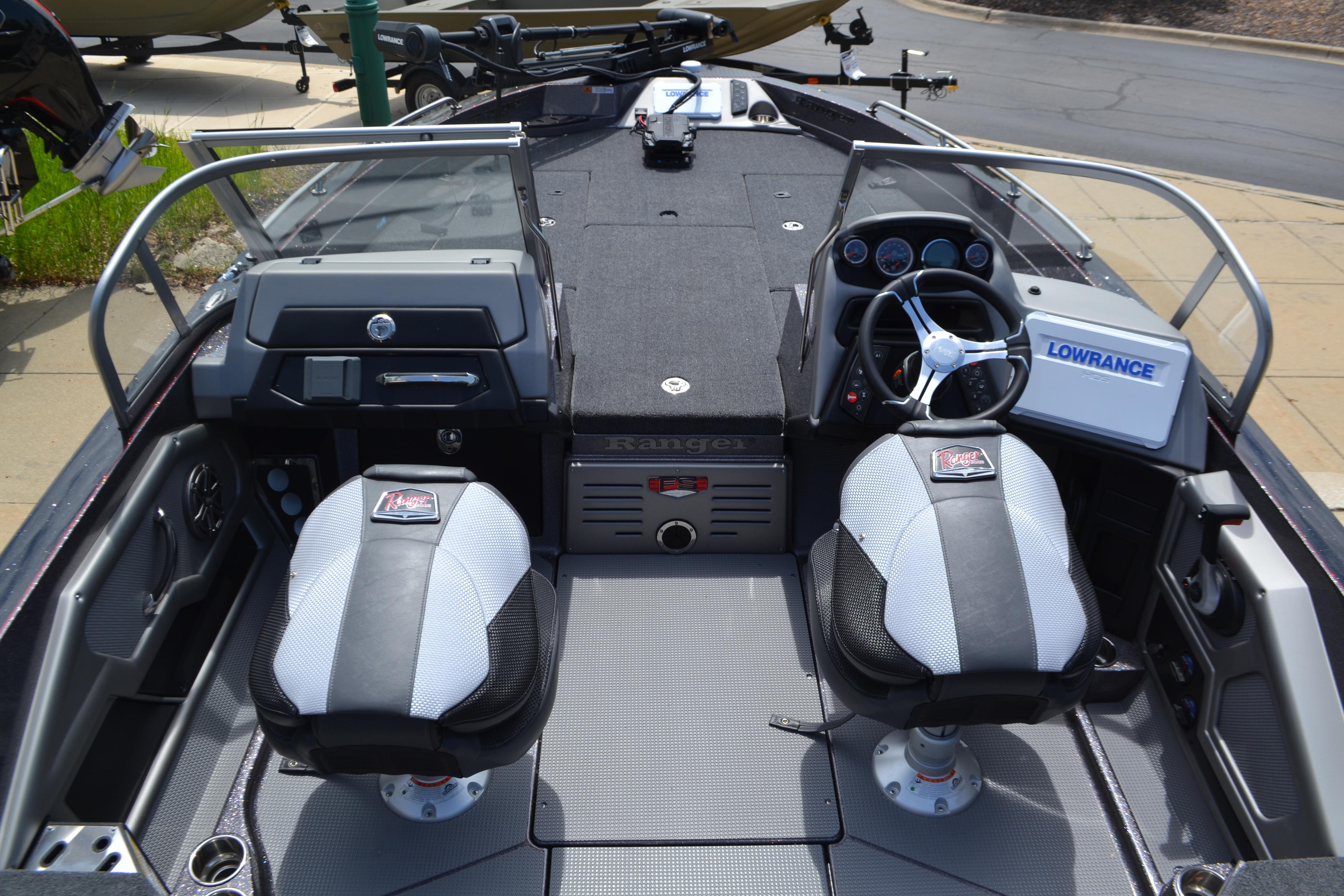 Boasting greater space and power, the 620FS Ranger Cup Equipped takes your game to the next level with a roster of factory-installed options that are most in-demand by touring pros and guides alike. Now, we’ve added even more options with new Garmin® and Lowrance® packages available. Ranger Cup Equipped models enjoy huge electronics units, a walk thru windshield, the trolling motor of your choice, three lithium trolling motor batteries and visual upgrades like polished Challenger wheels. Brushed, CNC-machined aluminum grab handles and accents deliver handsome touches that match the custom-designed, stitched trim throughout that replaces plastic. Twin glove boxes in the passenger console give more space, as do the front storage boxes that have been enlarged to their maximum size. Complementing the wealth of new features are time-honored and perfected Ranger build protocols and quality, from our upright and level flotation for more power, more smarts, and more control. Time you hit the water—hard.