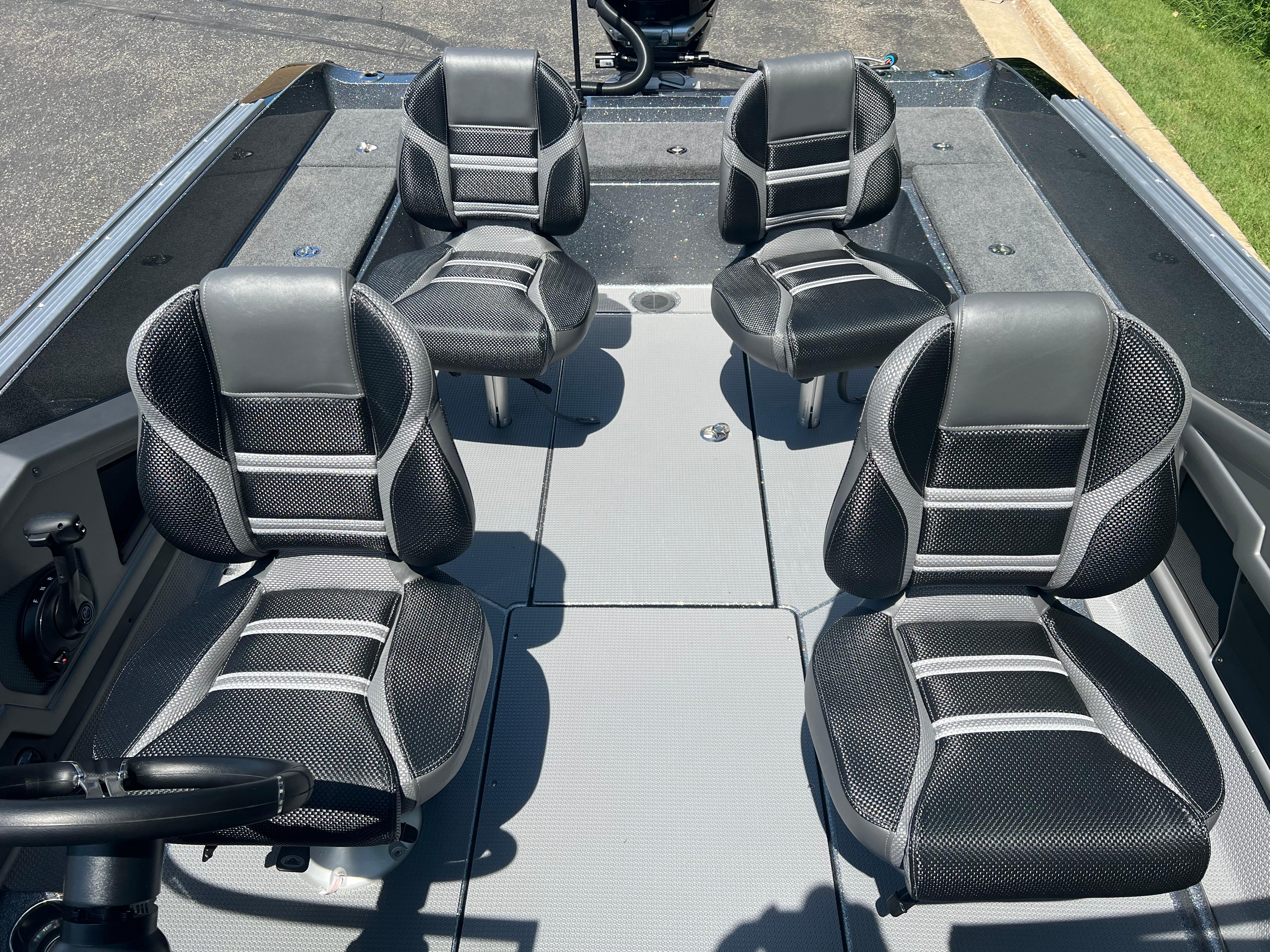 • Custom fitted premium marine upholstery - (4) all-weather SRS fold-downs: (2) w/ slide-swivel, (2) power pedestals