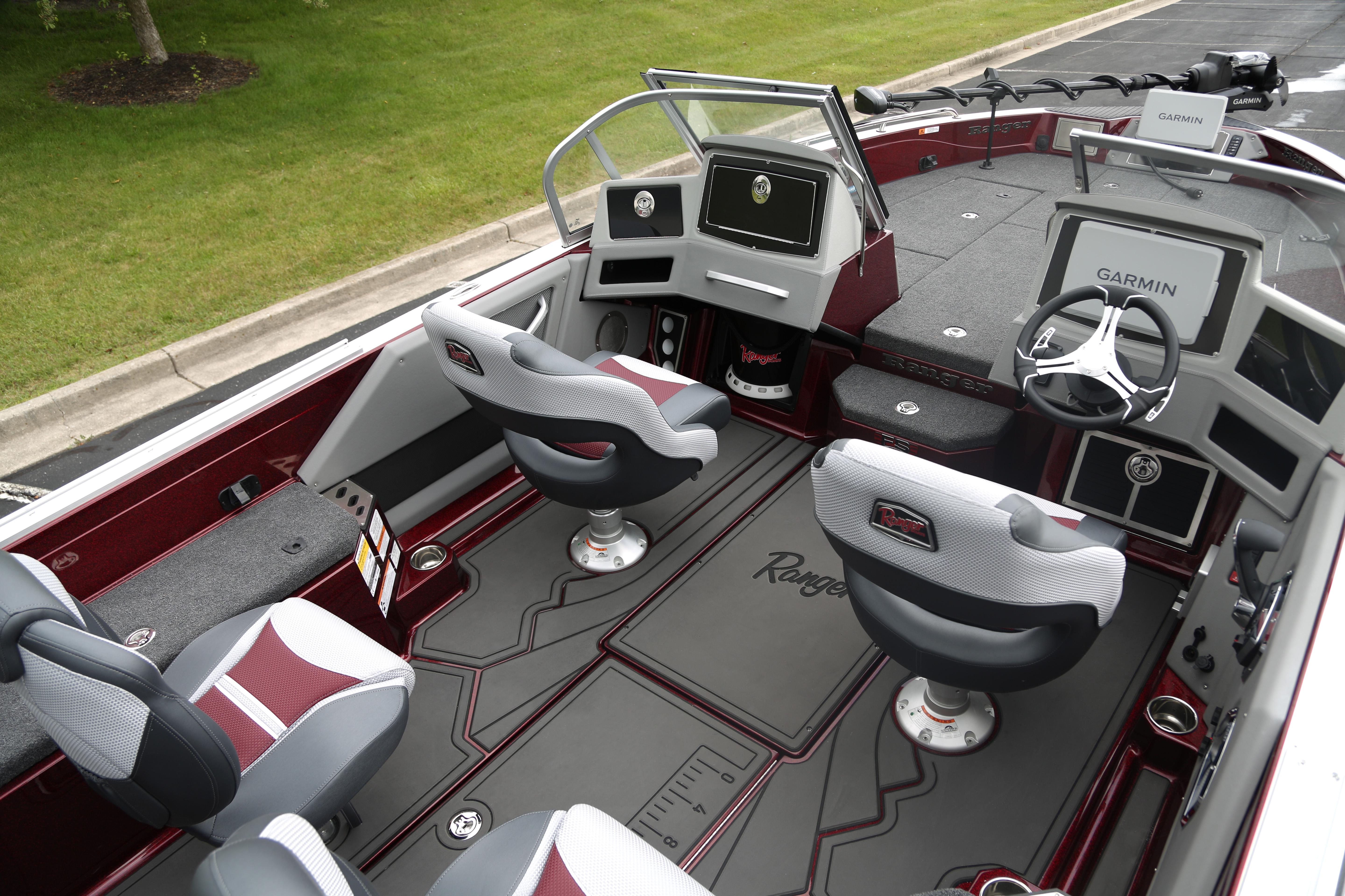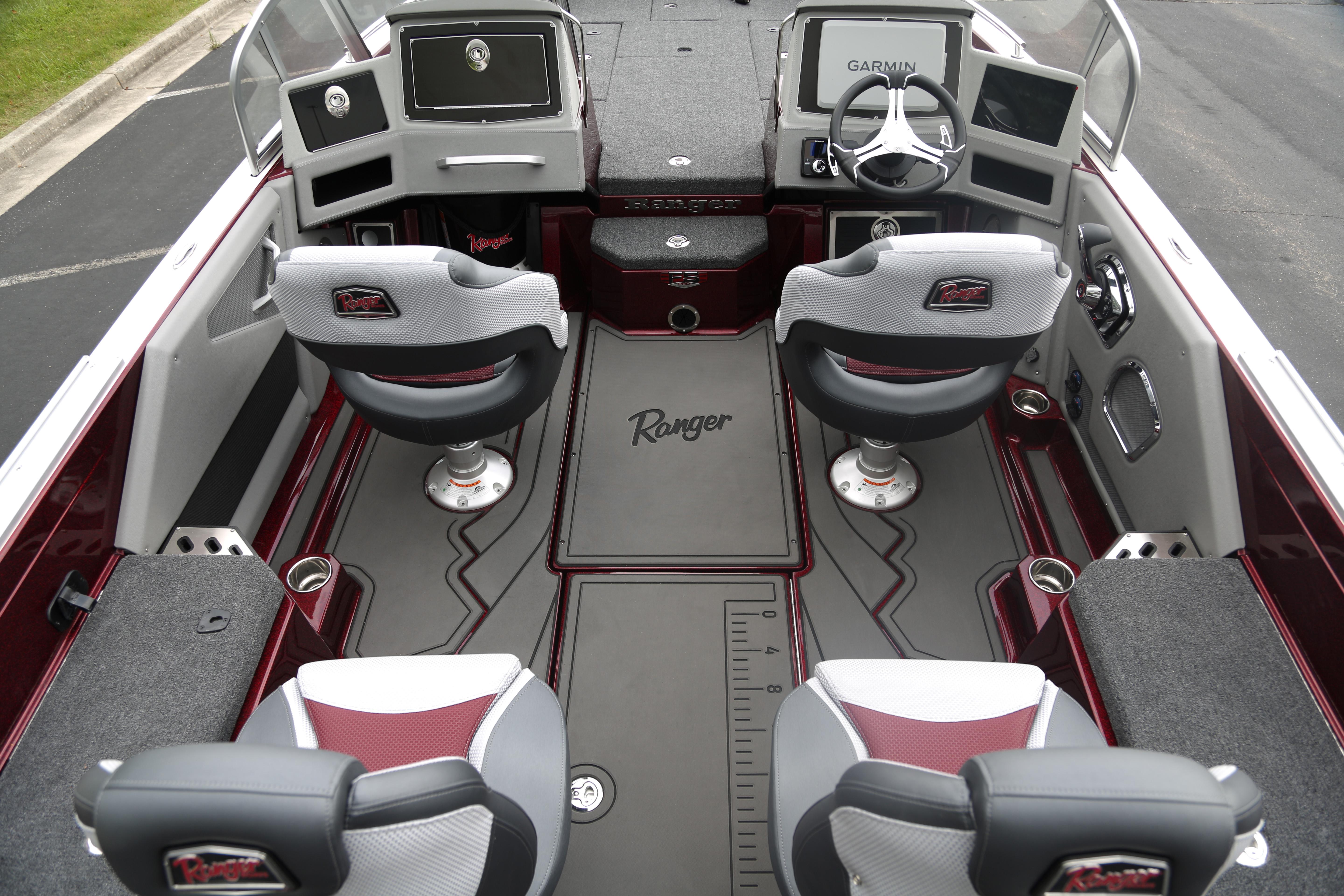 This is the big water hot rod that gets you there first with more fishability and an incomparable pedigree. When equipped with a 400-horse Merc, the 621FS PRO outperforms everything in its class and when you’re on the kicker or trolling motor, nothing fishes finer. The power of the 621FS PRO only begins at the outboard. The standard Ranger RIDE system gives real-time insight and control over every major boat function as well as outboard information. Big screen capability at the bow and console gives you the edge over the fish while legendary construction protocols and quality make the 621FS PRO bristling with inner strength to conquer waves and the competition. Inside, a full non-skid cockpit boasts the largest storage capacity we’ve ever featured in a 21-foot Deep V. Store dozens of tackleboxes in the saddle stows and scores of rods up to 8’6” in the lockable center and port rod boxes. Twin passenger glove boxes and a driver’s footrest storage keep essentials hidden and dry while multiple tool and cup holders keep other necessities handy. Smooth, solid power complemented by unmatched fishability and capability put the 621FS PRO squarely atop the competition in every metric. It’s a new level of power that’ll conquer every obstacle.