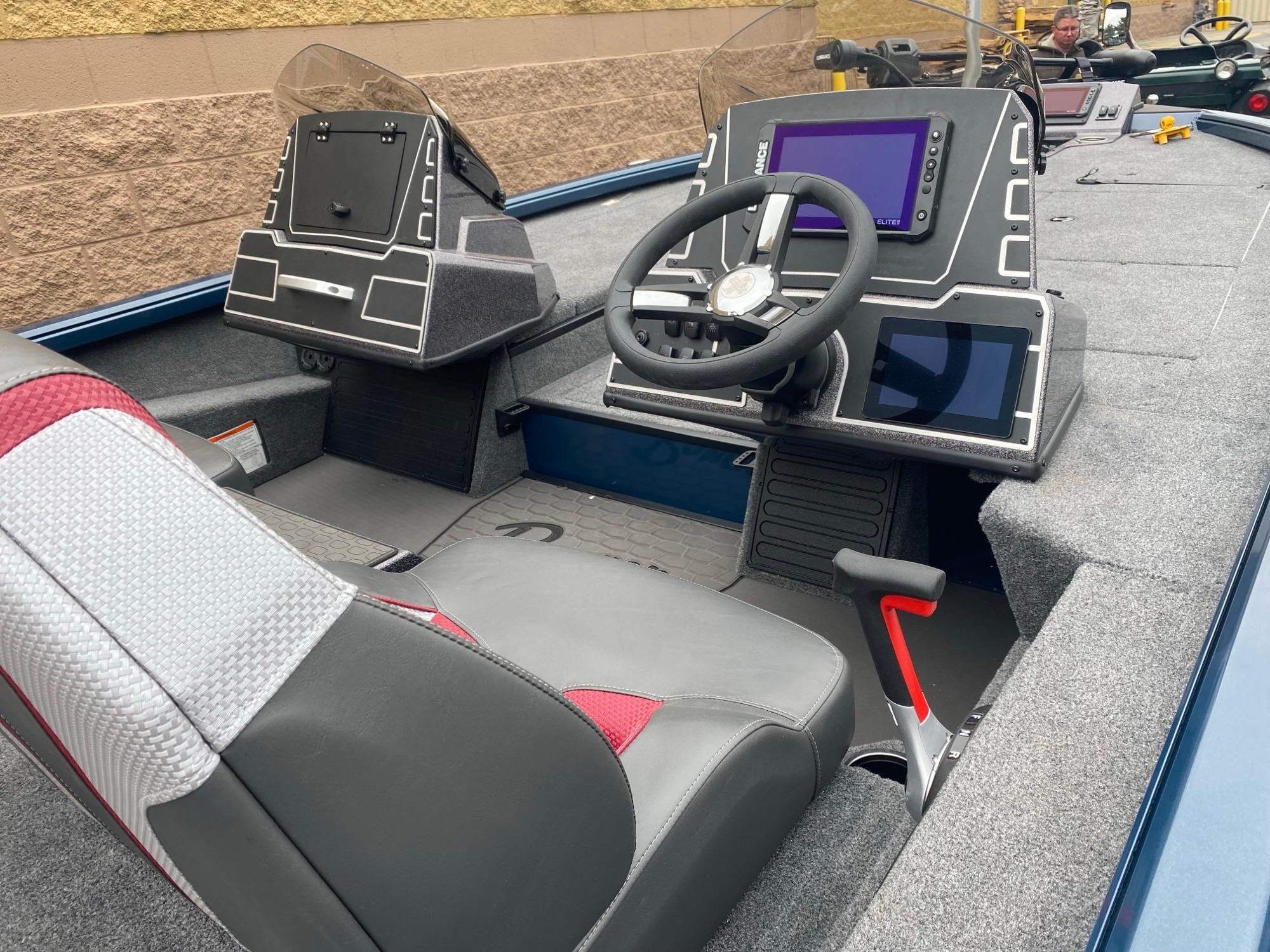 • Custom fiberglass console w/ flush-mounted depthfinder & easy touch switching